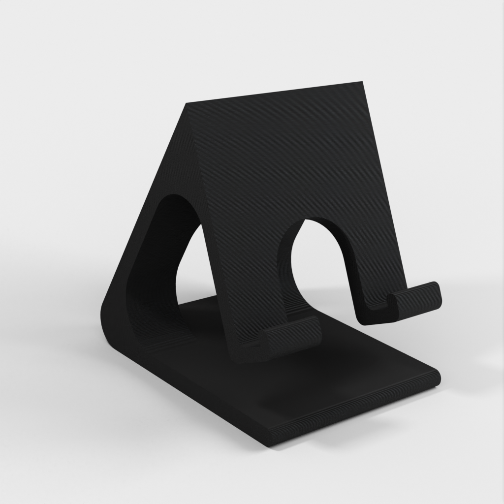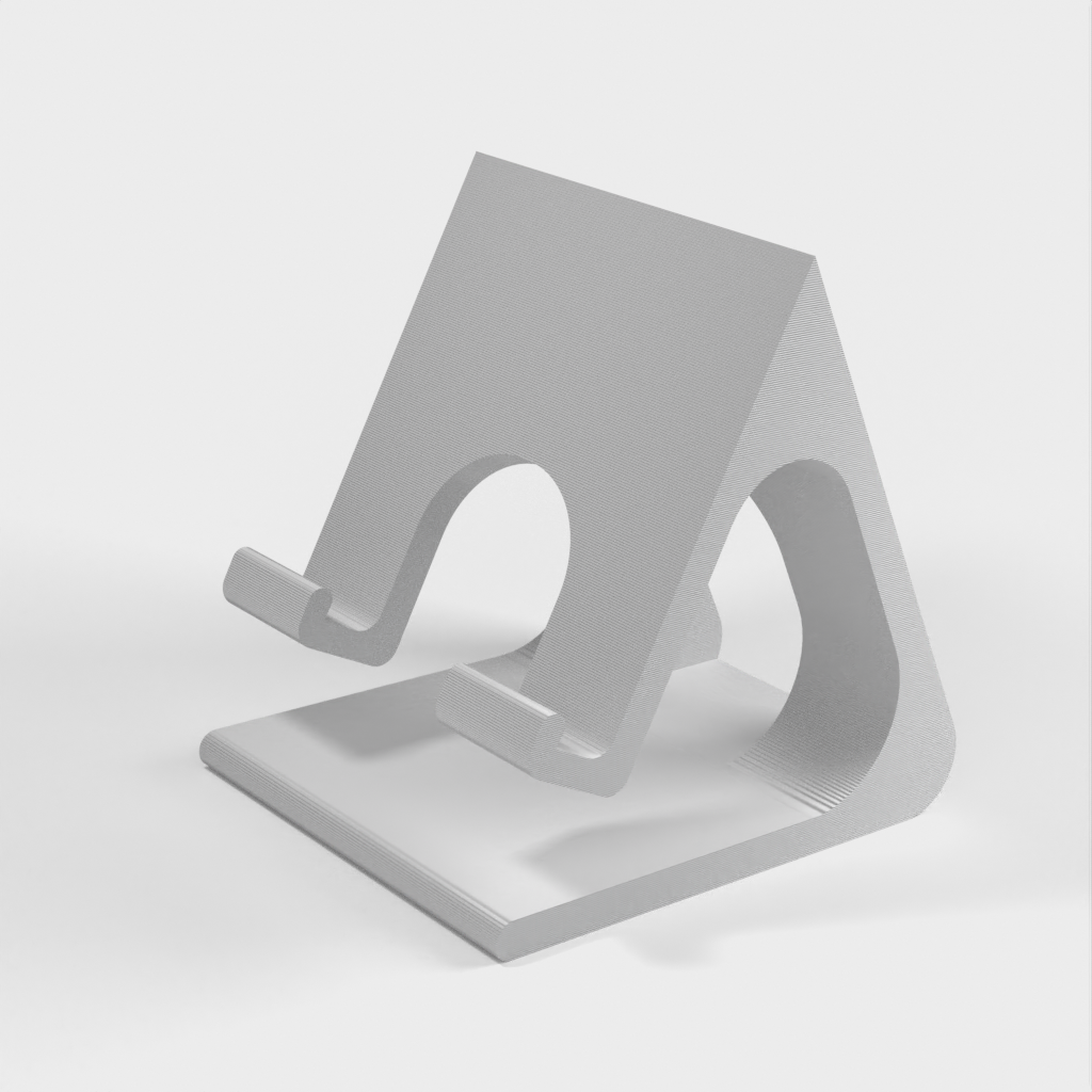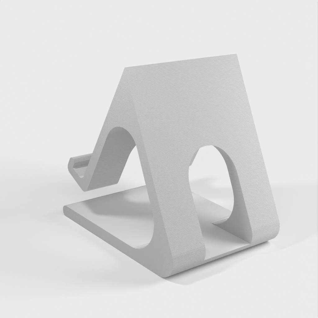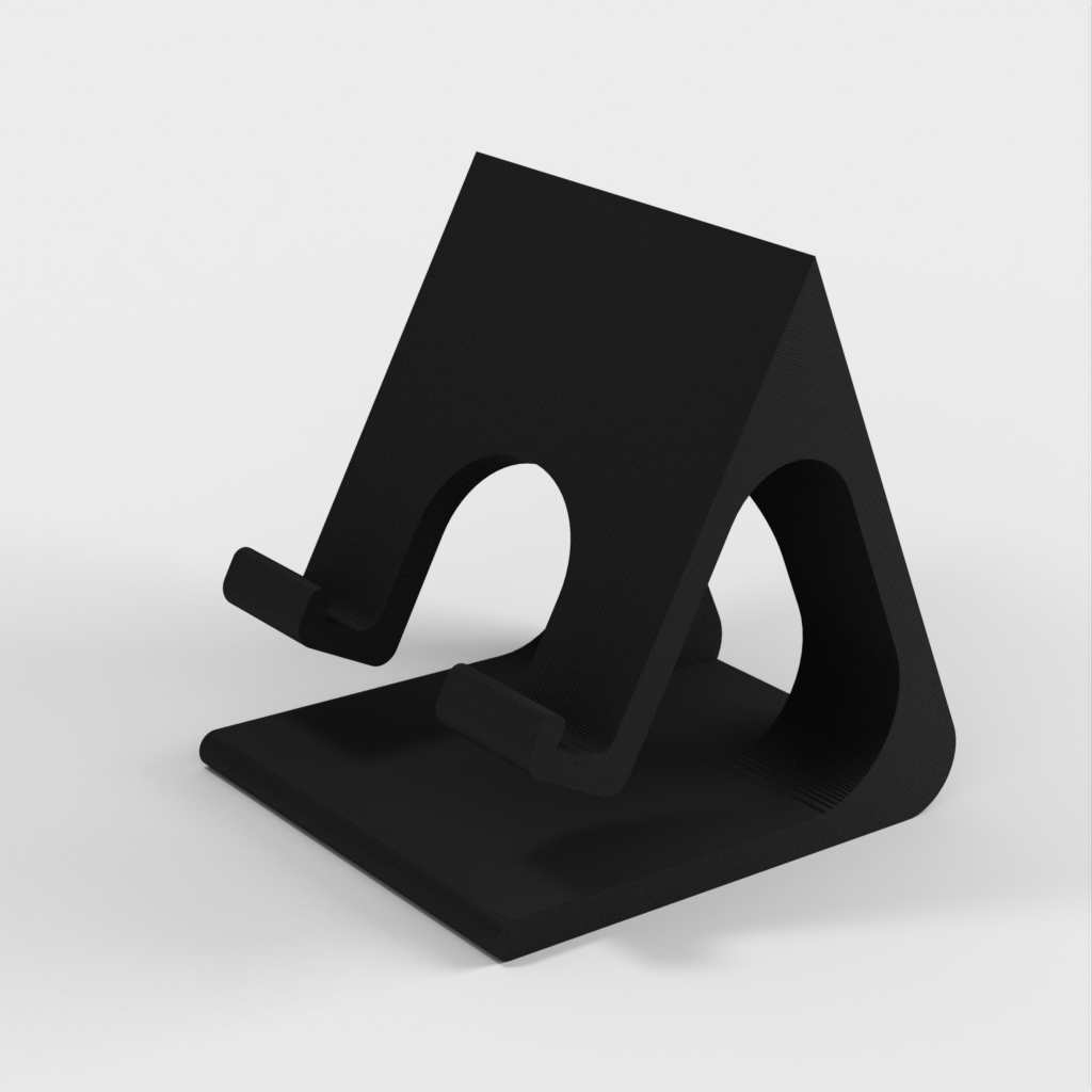 Yksinkertainen puhelinteline iPhone 6:lle, joka sopii myös muihin malleihin. Kaapeli menee reiän läpi, joten se on käyttövalmis. Tämä puhelinteline sopii erinomaisesti työpöydällesi tai toimistoosi, ja se voidaan helposti muokata tarpeisiisi sopivaksi.