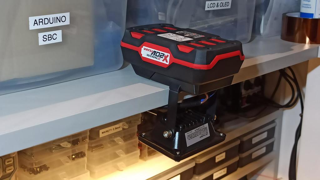Parkside X20V Team LED -työvalaisin, jossa on 10 W:n valonheitin, on täydellinen ratkaisu työalueiden, huoneiden ja leirintäalueiden valaisemiseen ilman pääsyä sähköverkkoon. Tämä edullinen lamppu, jota on saatavana eri versioina, on varustettu sisäänrakennetulla DC-muuntimella, joten se saa virtaa suoraan X20V-akusta. Tavallisella 2 Ah:n akulla lamppua voidaan käyttää noin 4–5 tuntia. Huomaa, että X20V-akuissa ei ole sisäänrakennettua ylipurkaussuojaa, joten tarkista akun jännite äläkä pura alle 15 V:n.