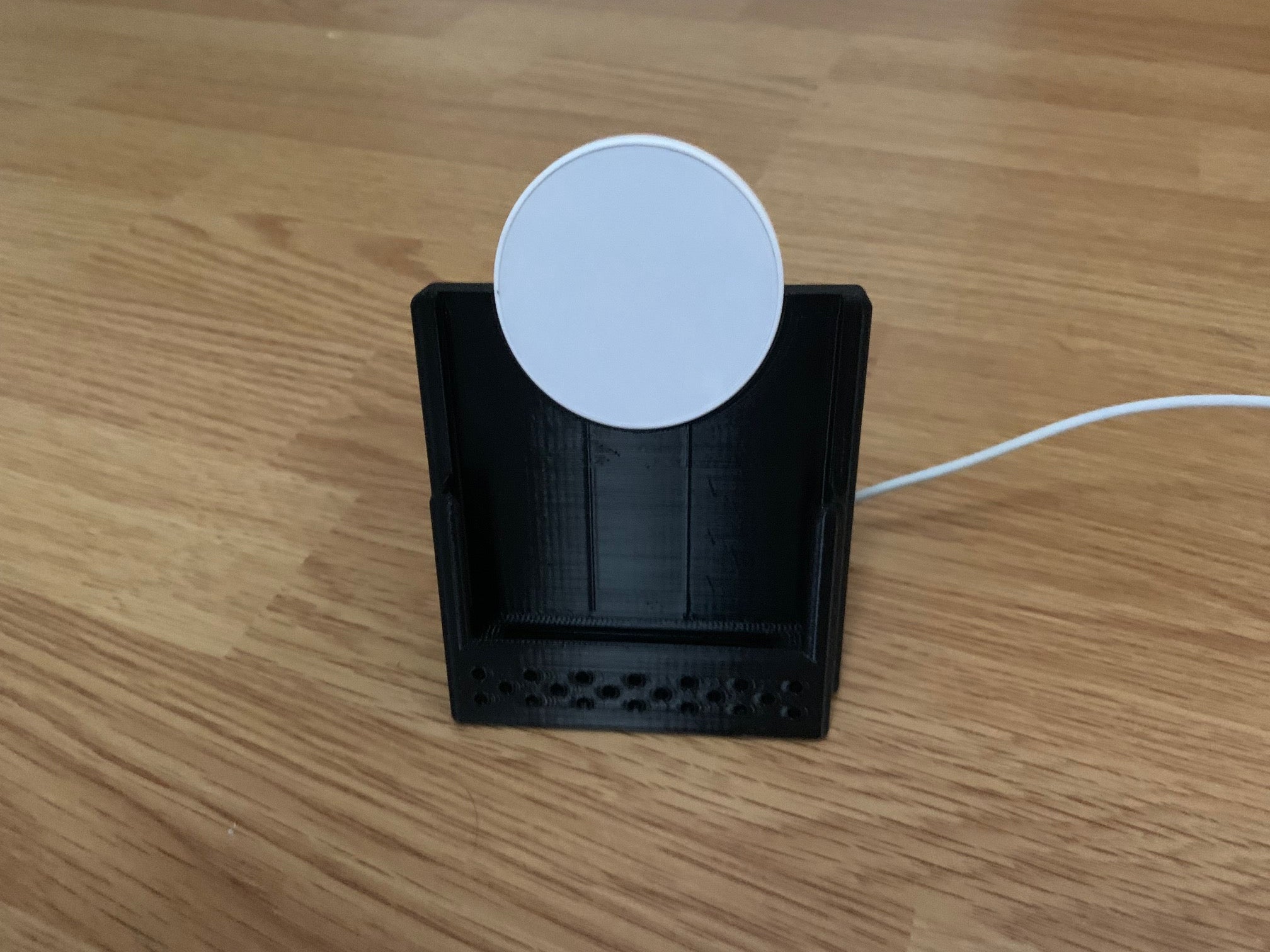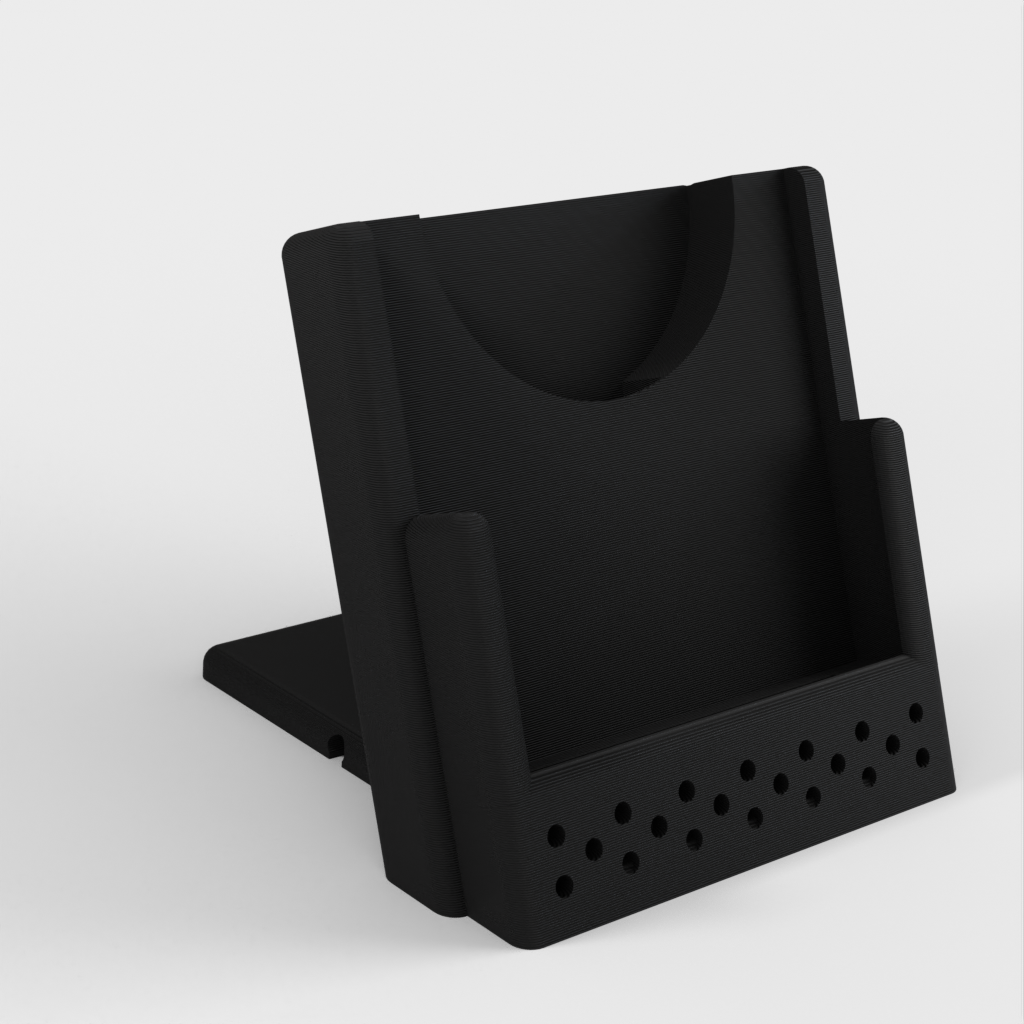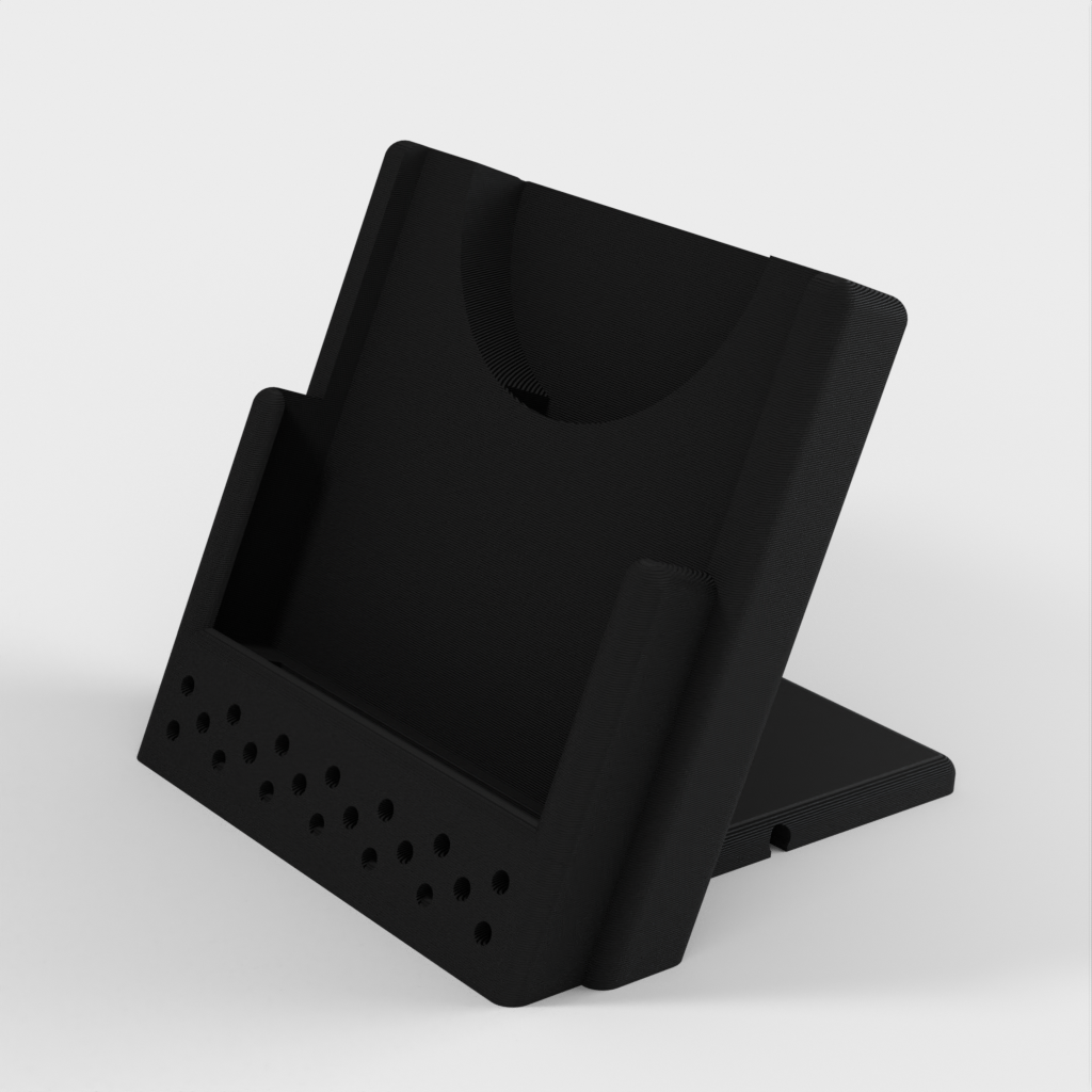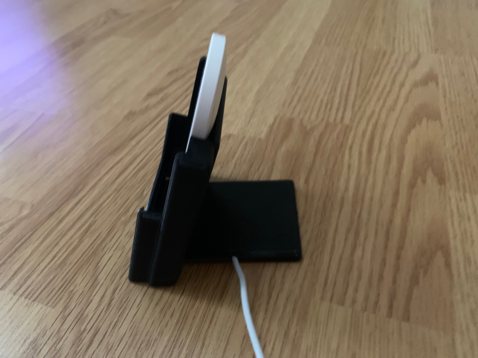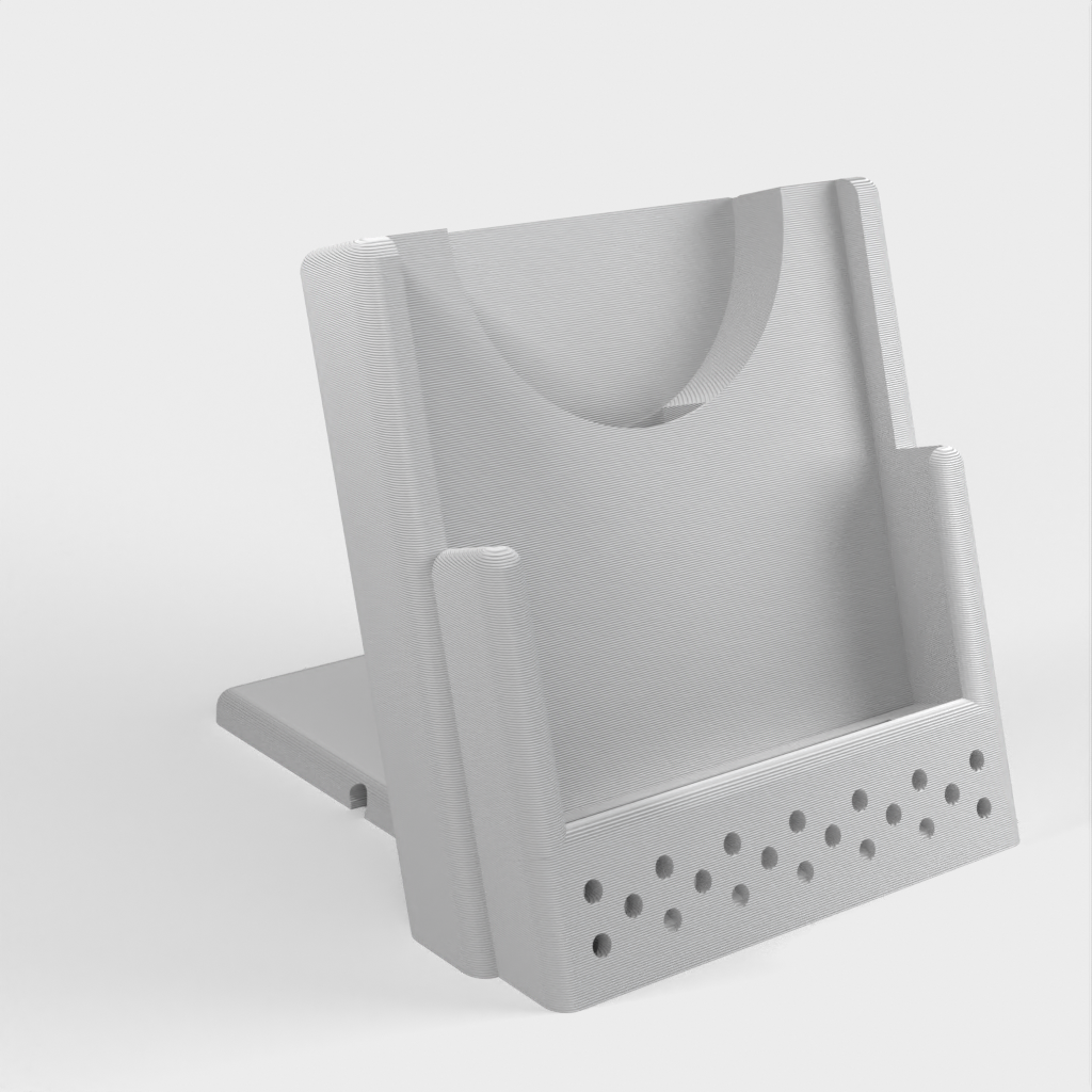 Tässä on mukautettava langaton puhelimen latausteline. Siinä on muotoilu, jossa on säädettävät kaapelinohjaimet, joiden avulla voit valita, tuleeko kaapeli ulos laturista vasemmalle, oikealle vai taaksepäin. Se voidaan räätälöidä sopimaan iPhone XS -puhelimeen, jossa on kolmannen osapuolen laturi, mutta se voidaan myös helposti muuttaa sopimaan mihin tahansa muuhun puhelimen ja laturin yhdistelmään.