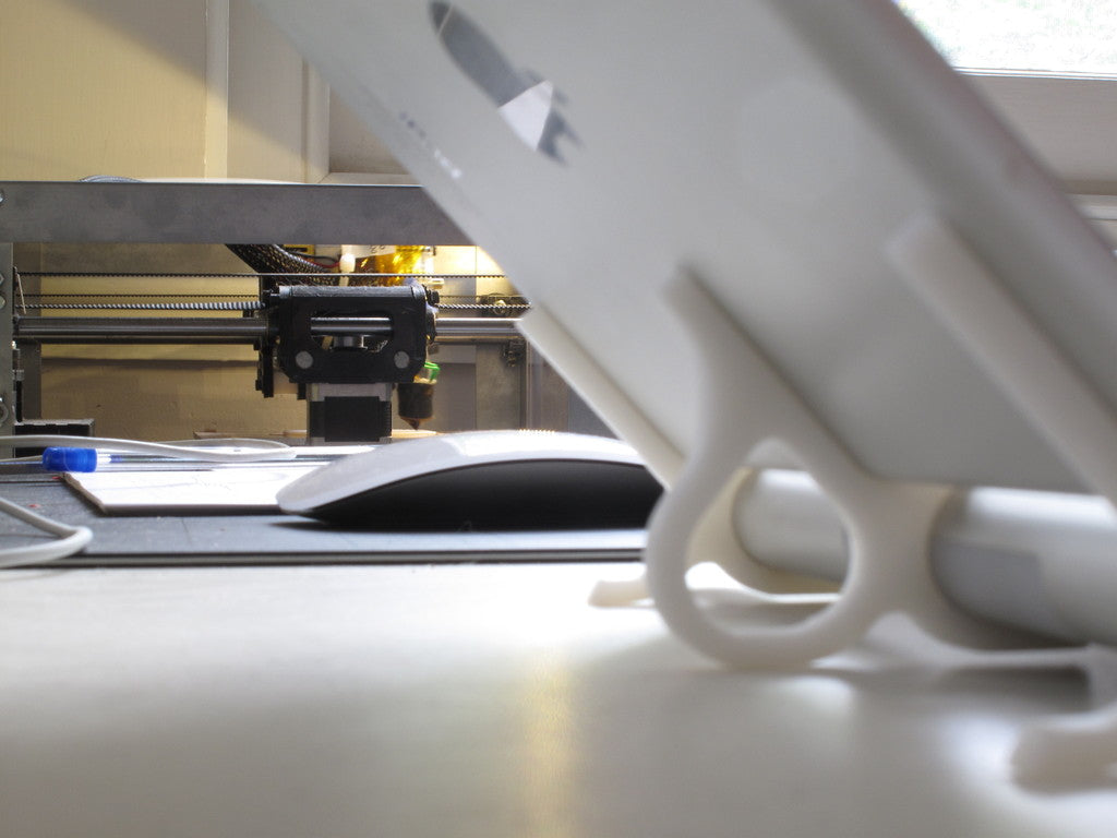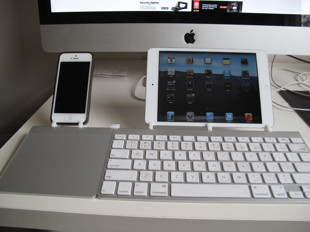 Yksinkertainen jalusta iPhonelle ja iPadille, jossa on integroitu langaton Apple-näppäimistö ja ohjauslevy