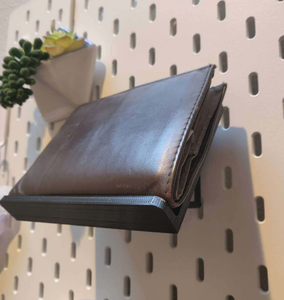 Hylly IKEA SKÅDIS -reikälevylle. Mahtuu keskikokoinen käsilaukku. Täydellinen lisävaruste tilojen järjestämiseen parhaalla mahdollisella tavalla. Tämän hyllyn avulla voit säilyttää lompakkosi helposti ja kätevästi IKEA Skådis -lautassa.