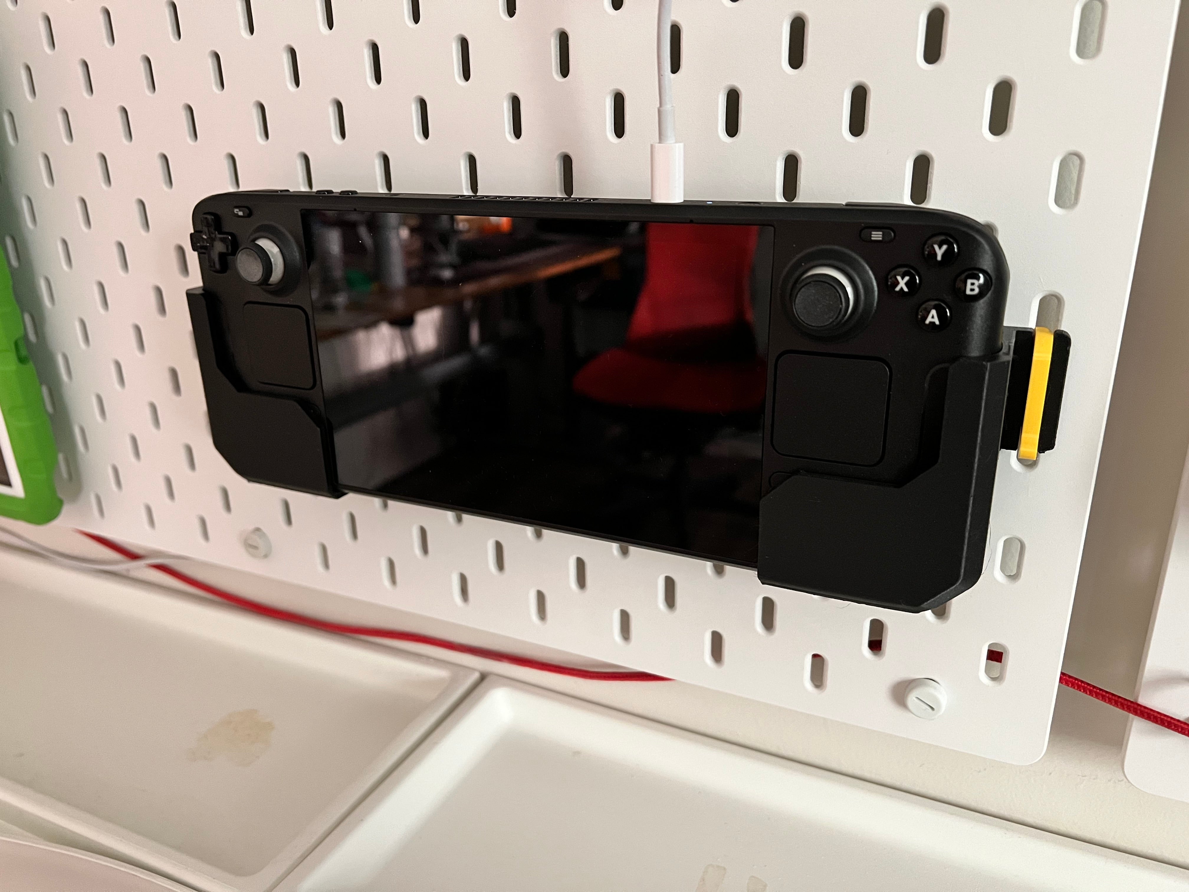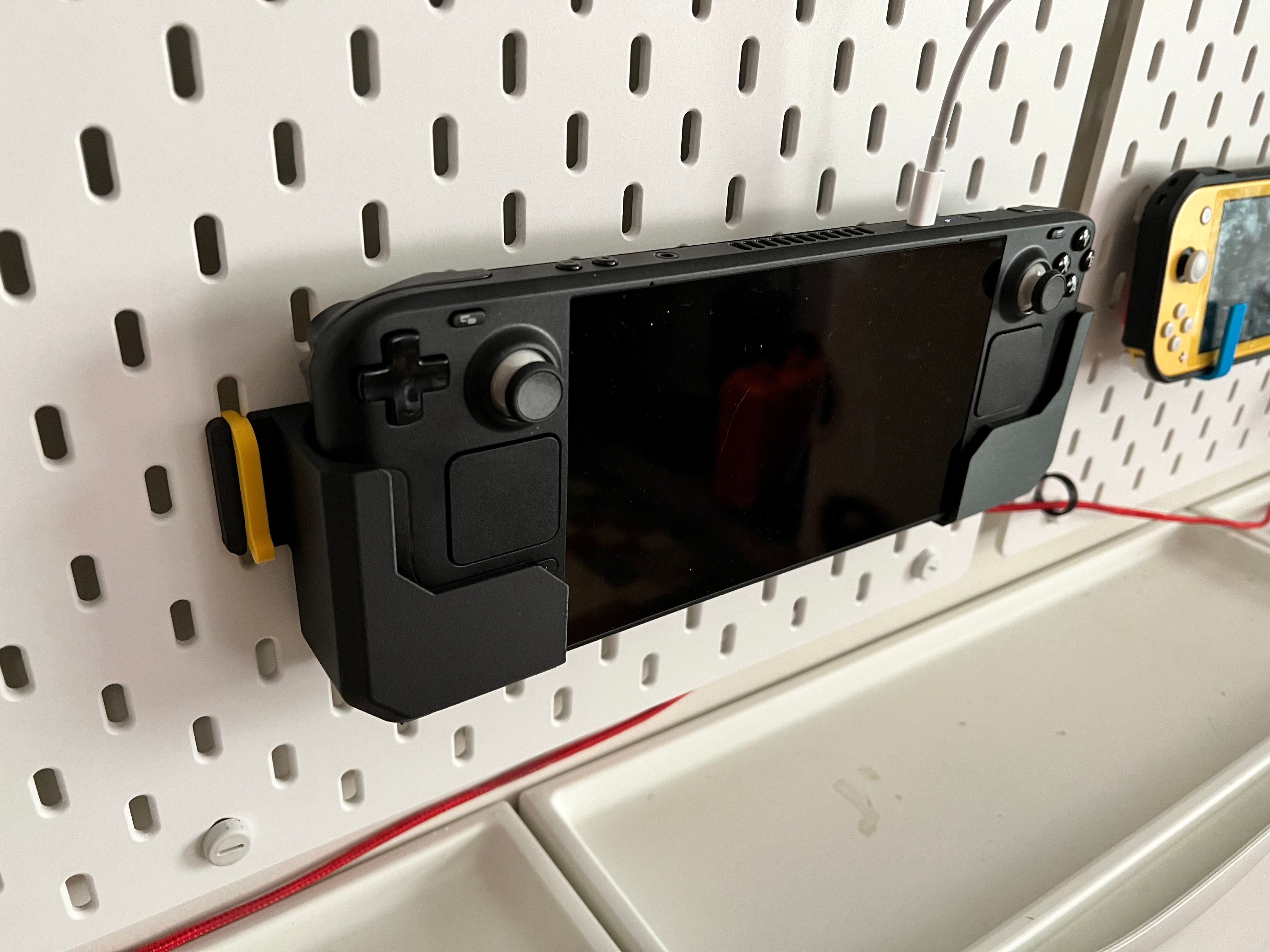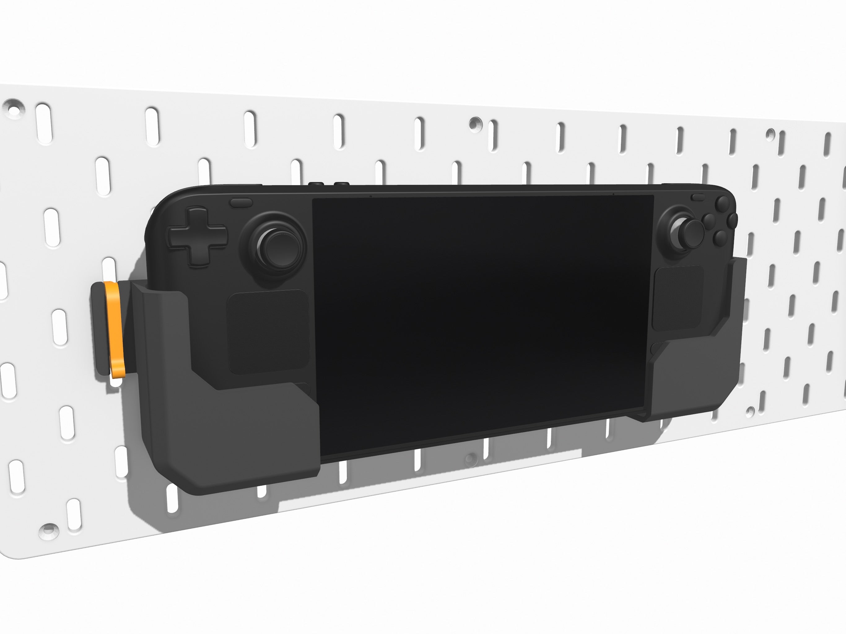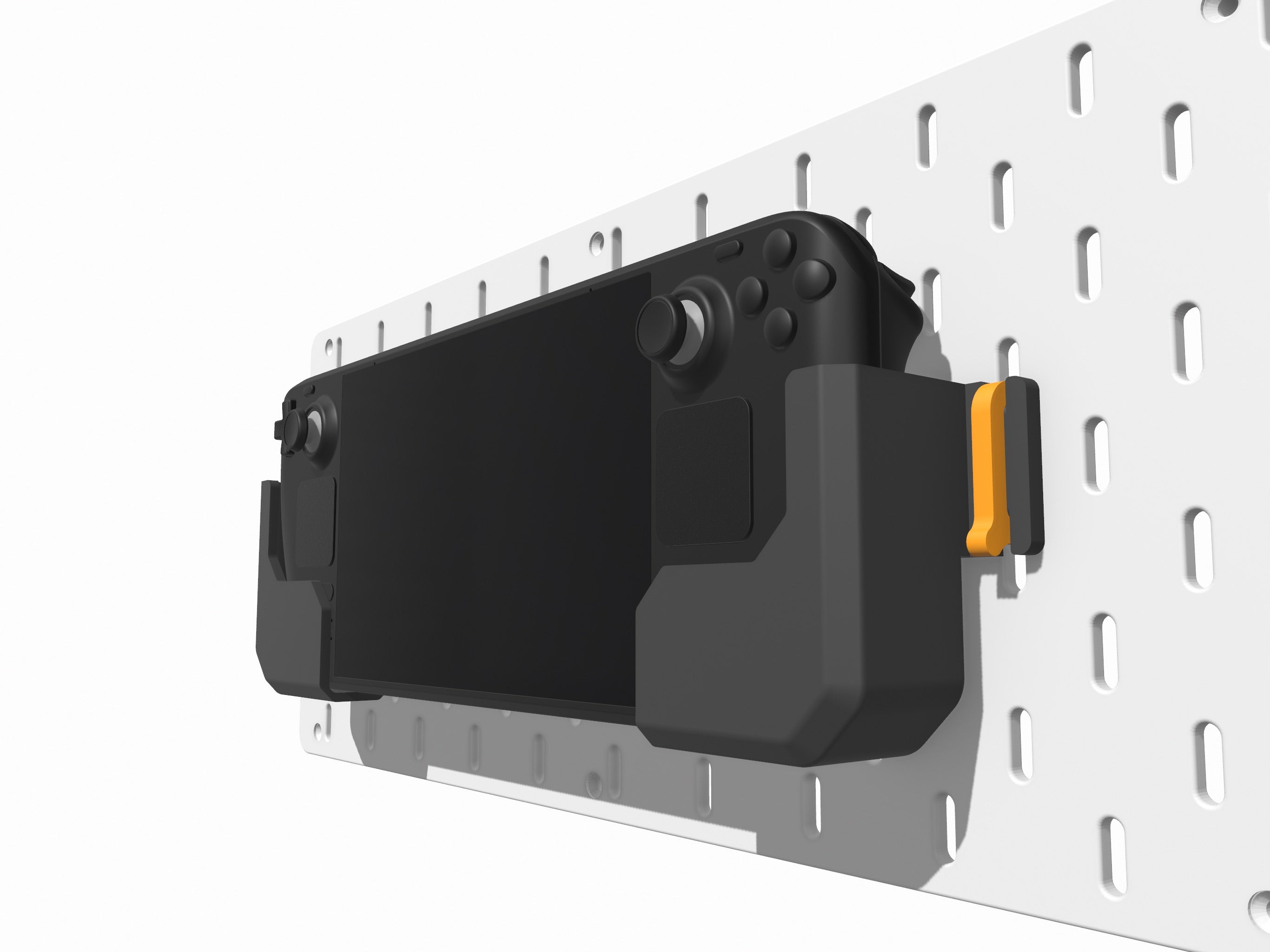 Skådis - Steam Deck Holder on käytännöllinen ratkaisu, jolla voit kiinnittää Steam Deckisi turvallisesti Ikea Skådis -nitolevyjärjestelmään. Tämä pidike on suunniteltu suojaamaan laitetta tahattomalta putoamiselta samalla kun se pitää pelitilasi siistinä ja järjestettynä.