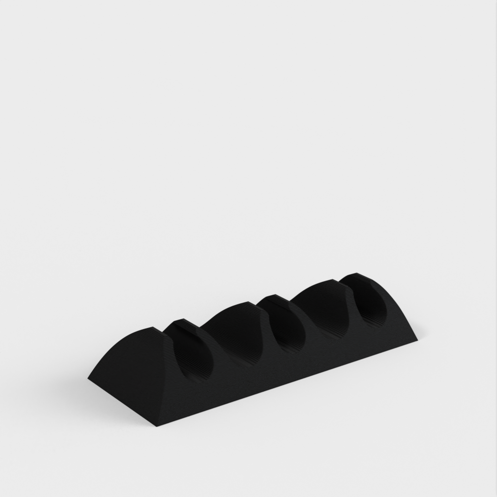 Tämä kaapelijärjestäjä on suunniteltu erityisesti useimpien puhelimien mukana tuleville vakio-USB-kaapeleille (leveys 0,37 mm) - esimerkiksi iPhonen USB-C-kaapelille. Se voidaan kiinnittää mihin tahansa pintaan pienellä komentoliuskalla helppoa irrottamista varten. Katso kuvat viitteeksi.