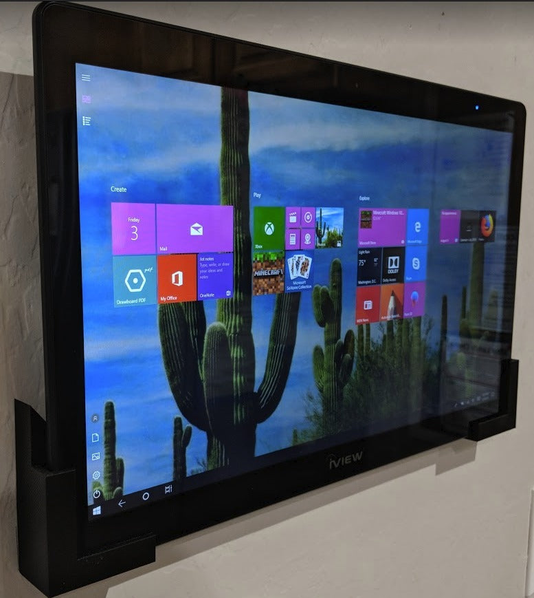 Säädettävä seinäkiinnitys tableteille. Se pitää alareunan kulmat hyvin kiinni ja se voidaan säätää kehyskokoa, tabletin kokoa ja etäisyyttä seinästä, jotta tabletti pysyy paikallaan (esimerkiksi taustalevyjen huomioon ottamiseksi).