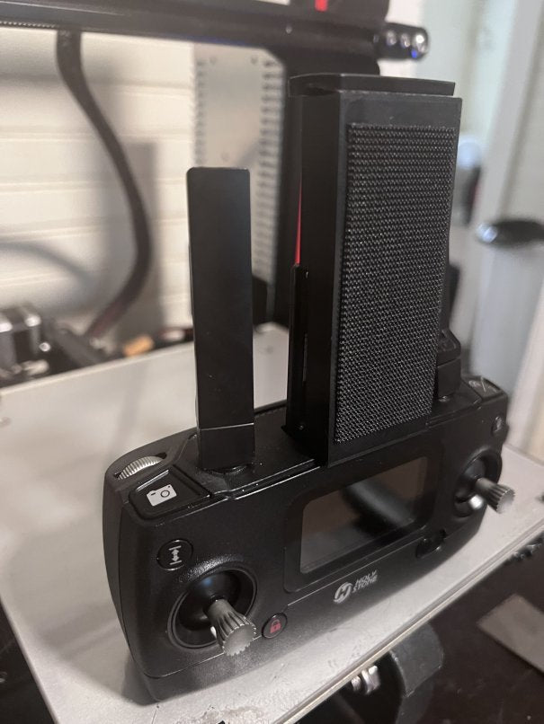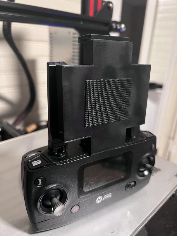 Sovitin HolyStone HS720E -droneohjaimelle. Jos puhelimesi ei sovi kunnolla ohjaimeen, tällä sovittimella voit asettaa minkä tahansa kokoisen puhelimen. Sinun tarvitsee vain kiinnittää tarrakiinnitys sekä ohjaimen pidikkeeseen, tähän sovittimeen että tietysti puhelimesi takaosaan. Jos haluat, voit käyttää kuminauhoja.