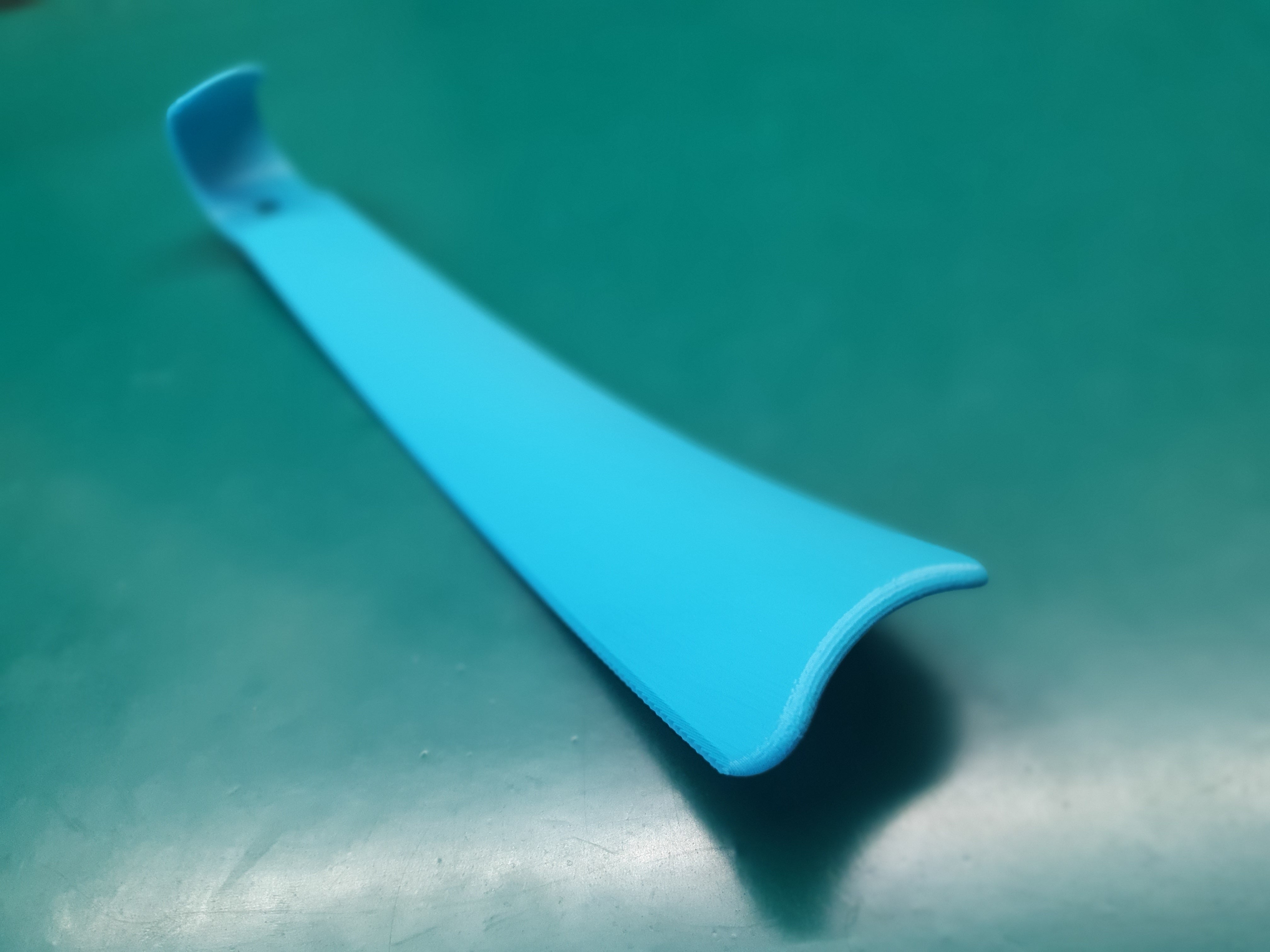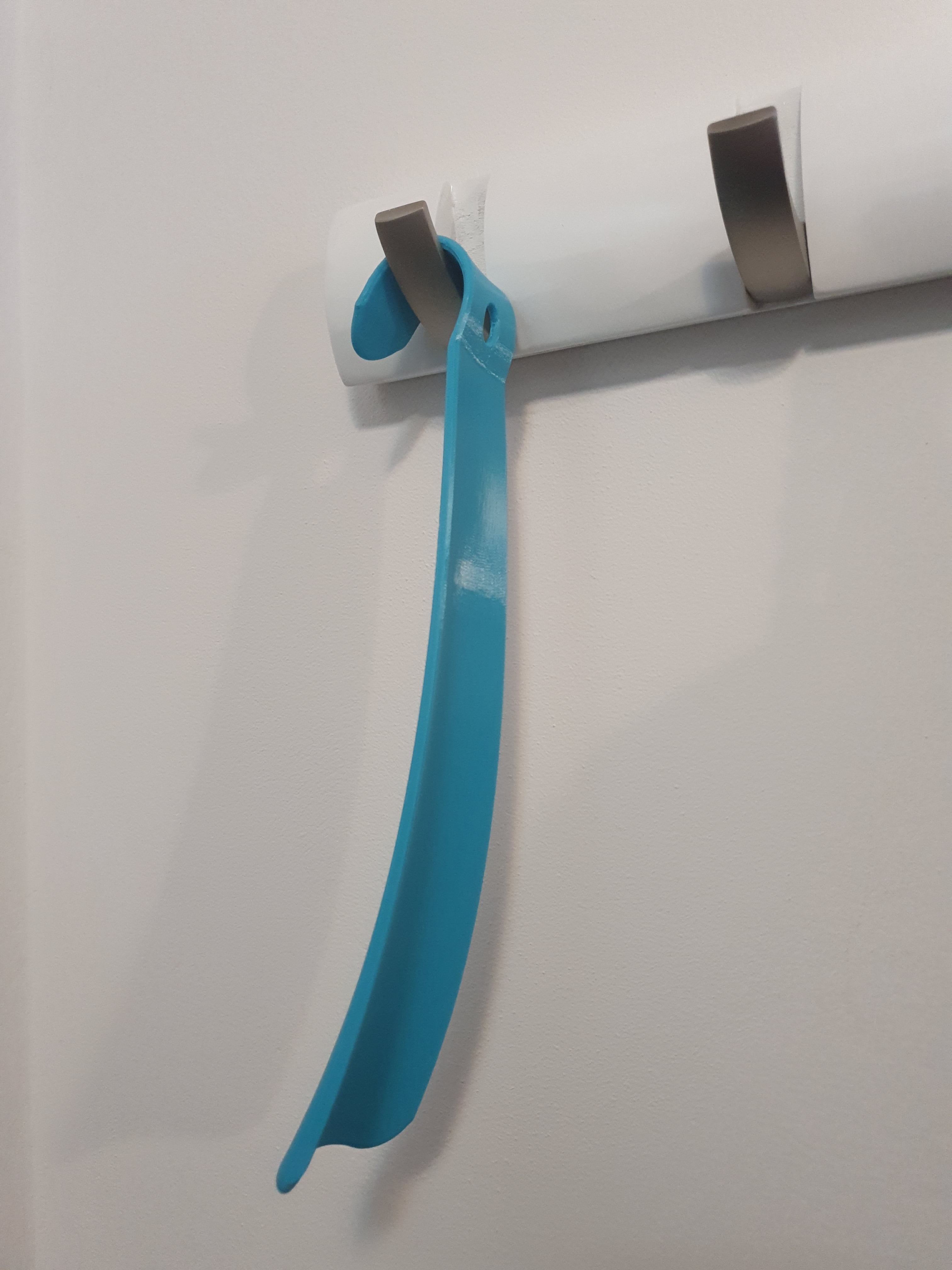 Suuri kenkätorvi, jossa on kulmikas pää, jonka ansiosta se voidaan ripustaa mihin tahansa ripustimeen. Sen pitkä muoto (27,8 cm) on ihanteellinen niille, joiden on vaikea yltää jalkoihinsa. Tähän tuotteeseen ei tarvita tukea. Tärkeää huomata, että on ratkaisevan tärkeää maalata pyöreän osan sisäpuolella oleva sauma, jotta vältytään ei-toivotuilta artefakteilta.