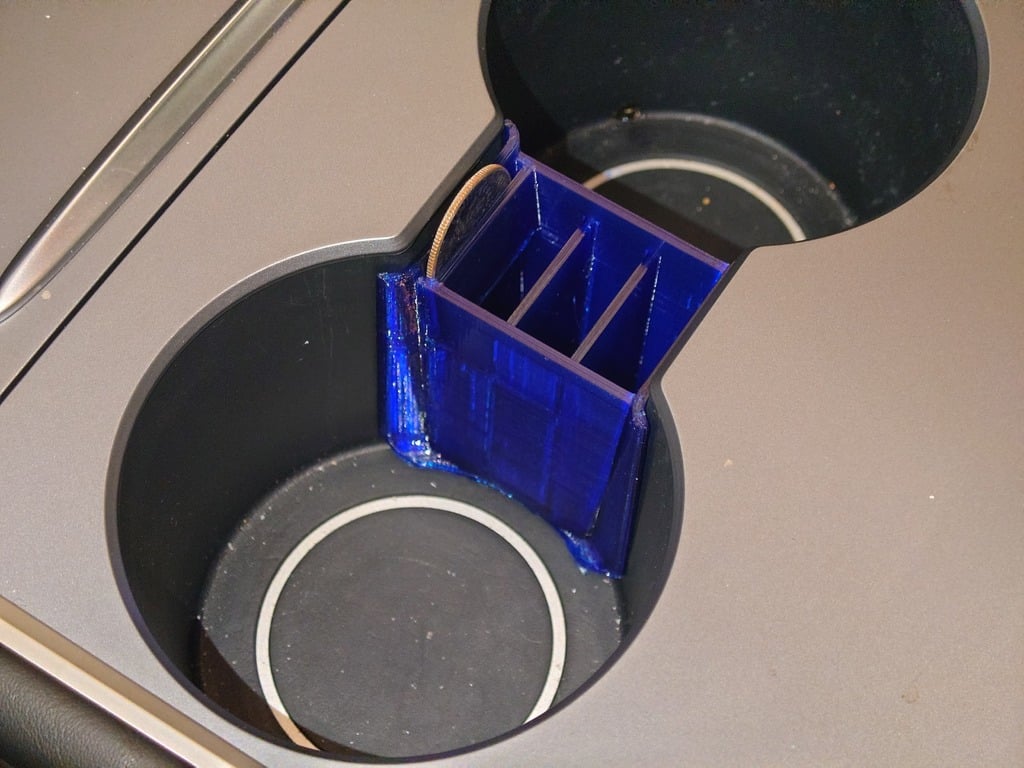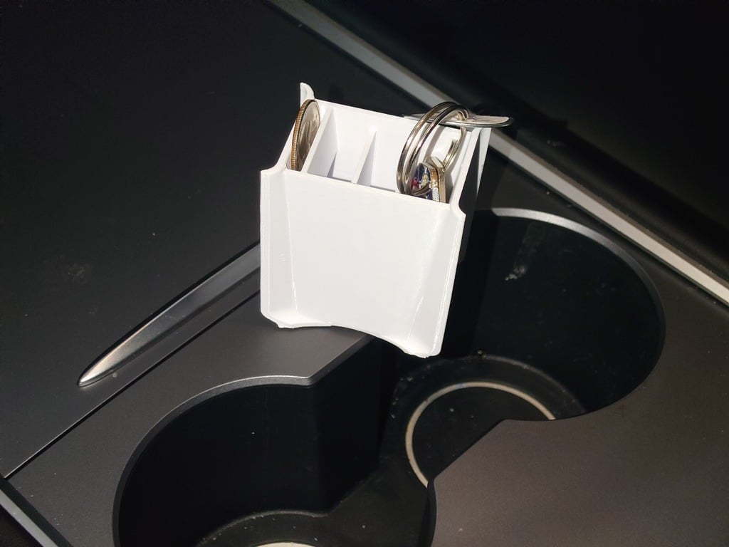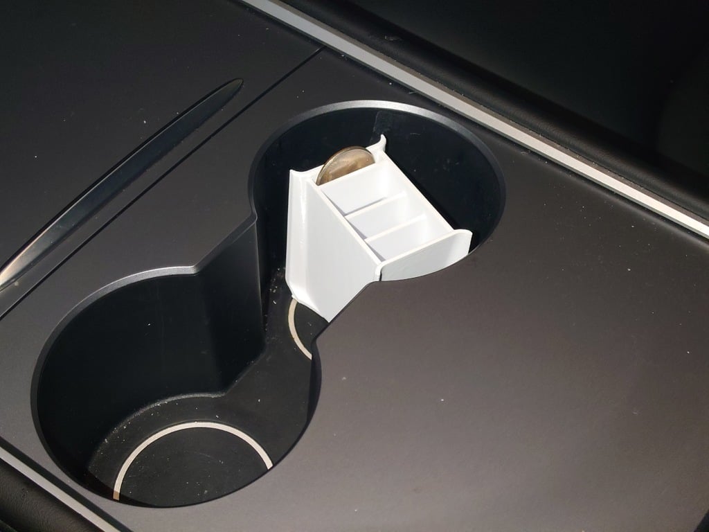 Tesla Model 3 / Model Y -mallin kuppipidikkeen jakaja ja säilytyspaikka konsoliin Gen 2 (2020-2023 / 2024+ mallit).