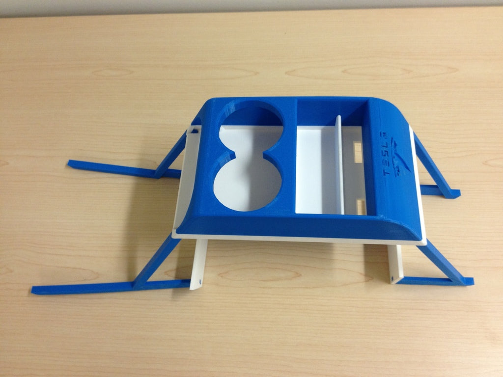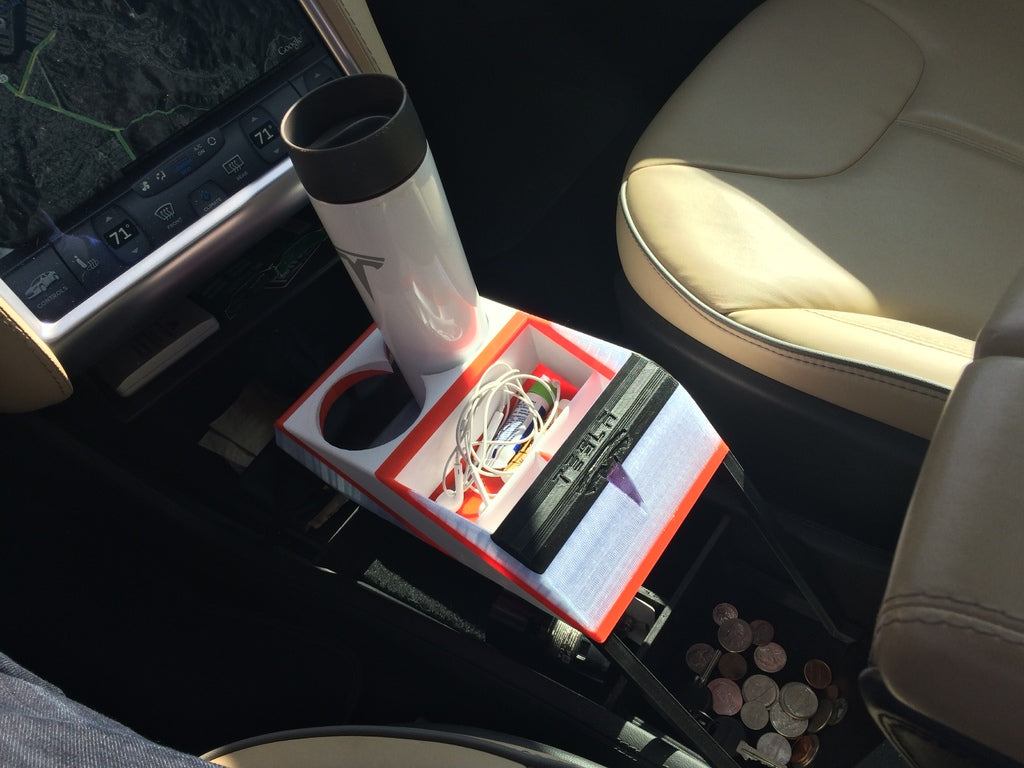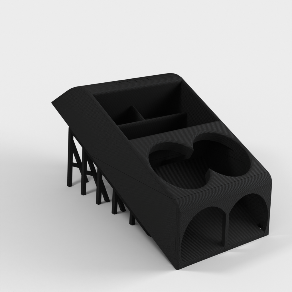 Päivitä Tesla Model S -autosi tällä upealla keskikonsolilla. Tämä malli on suunniteltu itse tulostettavaksi, mikä tarkoittaa, että voit hallita tulosta täysin ja mukauttaa sen omien mieltymystesi mukaan. Tämä keskikonsoli voi antaa sinulle mielenrauhan ajon aikana säilyttämällä juomasi turvallisesti ja pitämällä puhelimesi käden ulottuvilla. Juomatelineet ovat yhteensopivia useimpien tavallisten vesipullokokojen sekä erilaisten virvoitusjuomapullojen ja oluttölkkien kanssa. Puhelinteline on suunniteltu erityisesti sopimaan täydellisesti iPhone 5:lle ja iPhone 4S:lle.