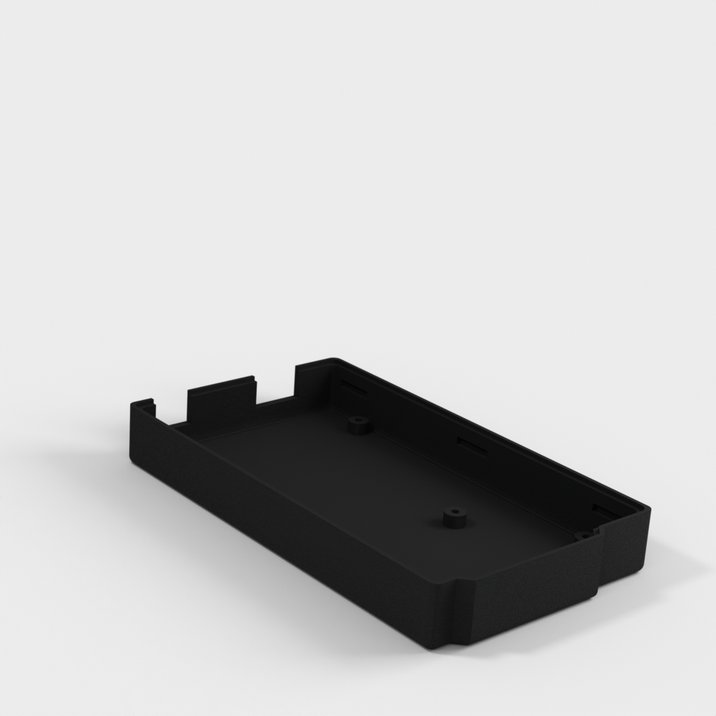 Sopiva kotelo Arduino Mega 2560:lle ruuvikiinnikkeillä ja napsautuskiinnityksellä. Suojuksia voidaan asentaa kotelon päälle. Yläosassa on neljä reikää, jotka näyttävät Arduino-kortin neljä LED-valoa. Näihin reikiin mahtuu Bivar PLP2-250 -valoputkia kiillotetumman ulkonäön saavuttamiseksi.