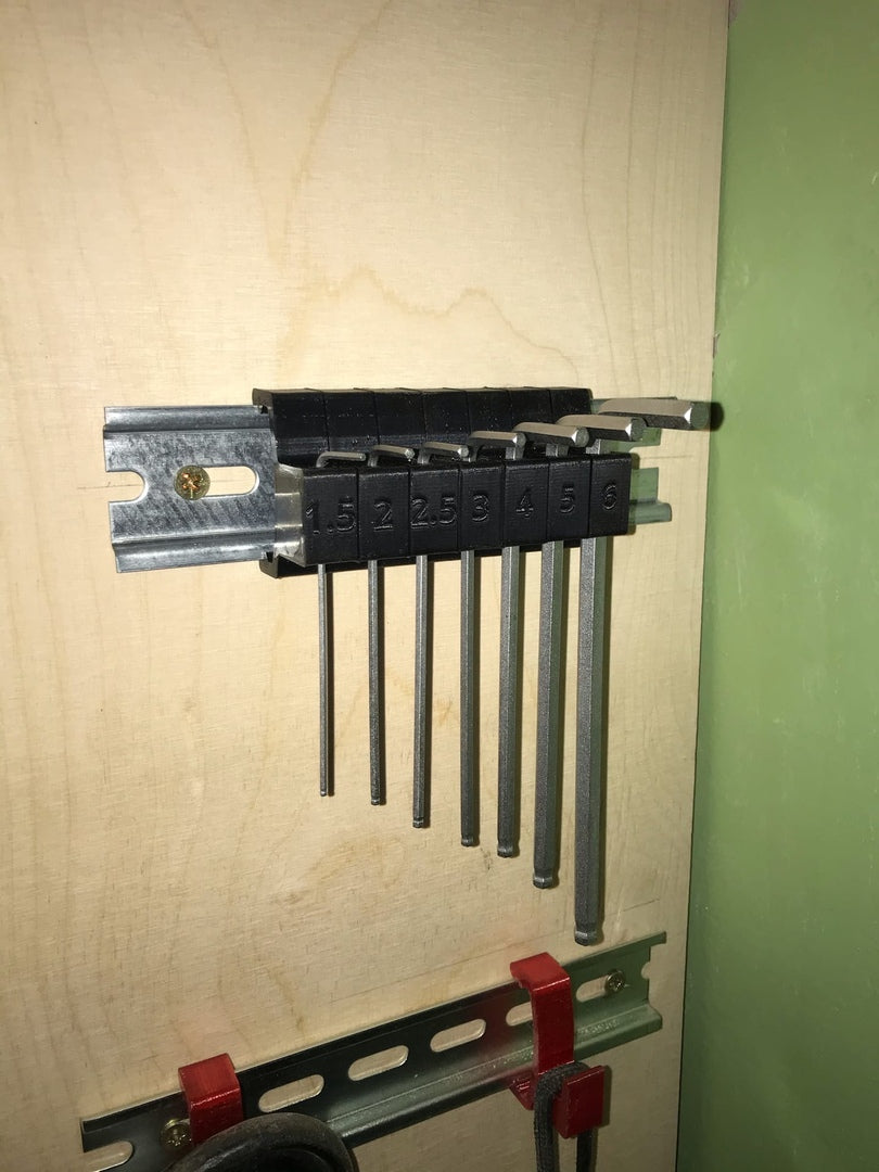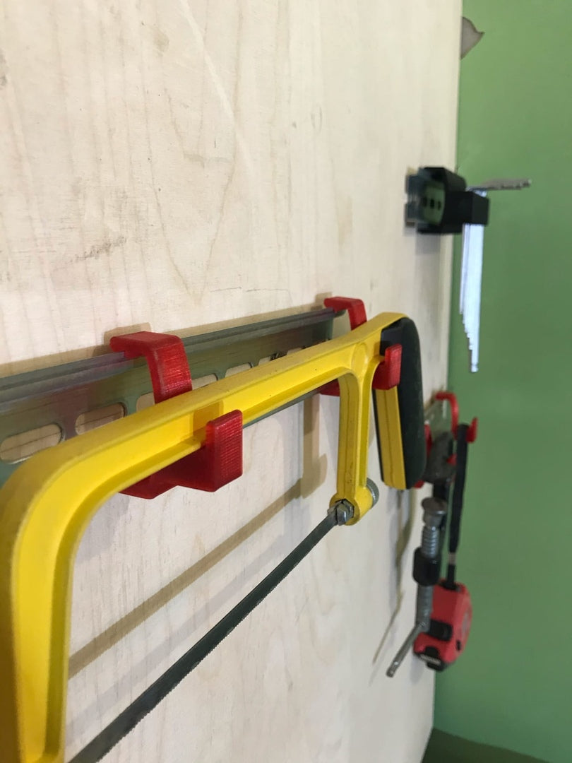 Jokainen pidike varmistaa, että työkalusi pysyvät paikoillaan, mutta ovat silti helposti saatavilla. Järjestelmä tarjoaa joustavan lähestymistavan työkalujen järjestämiseen, koska voit helposti säätää asennuksen DIN-kiskoon omien tarpeidesi mukaan. Tämä on budjettiystävällinen tapa luoda tehokkaampi ja siistimpi ympäristö, jossa löydät helposti tarvitsemasi työkalun ilman hukkaan heitettyä aikaa.