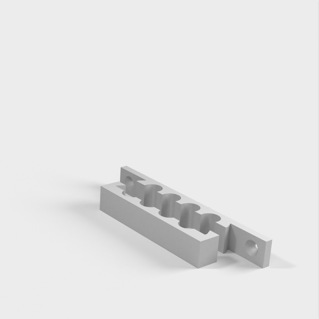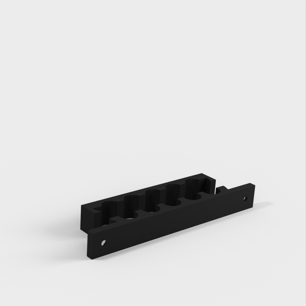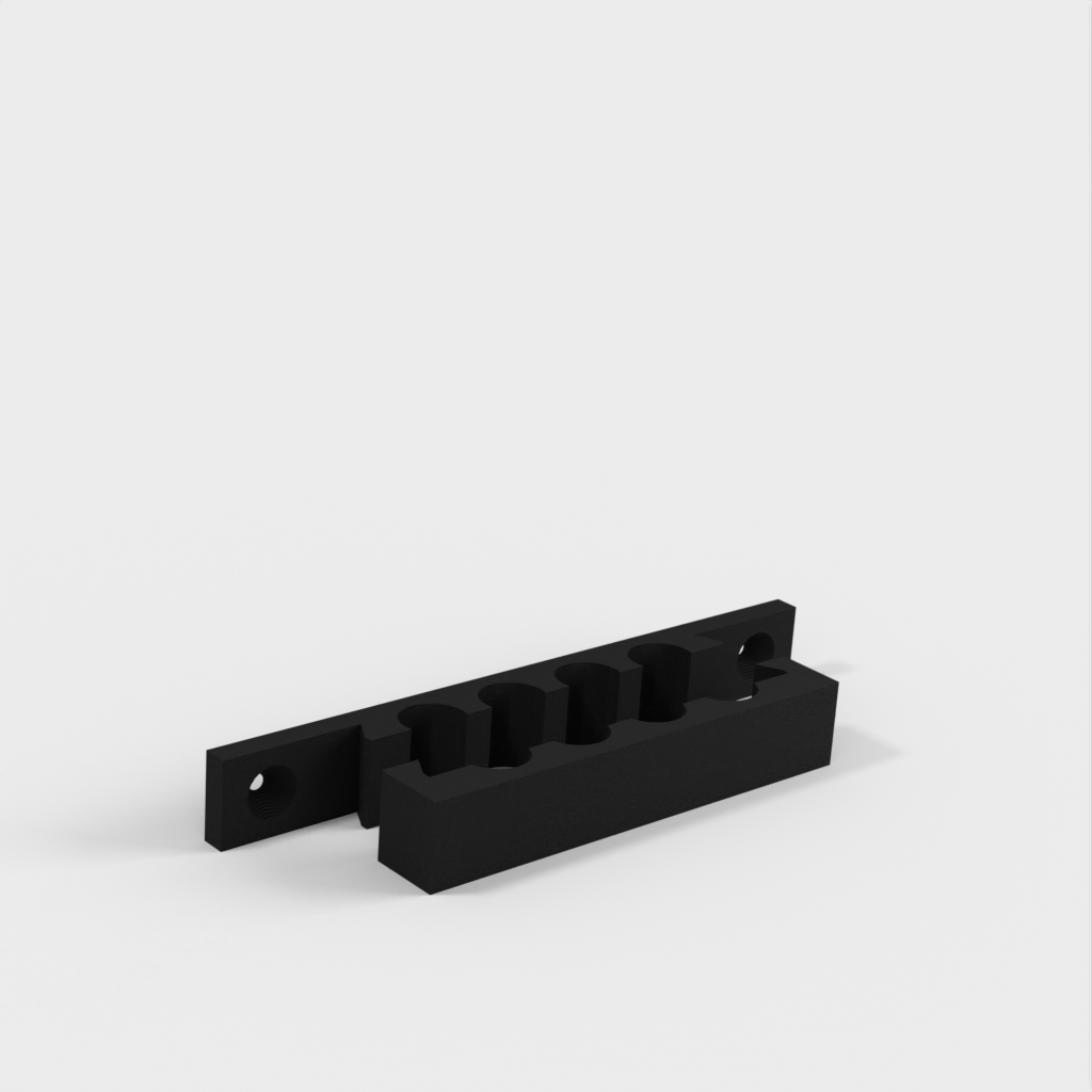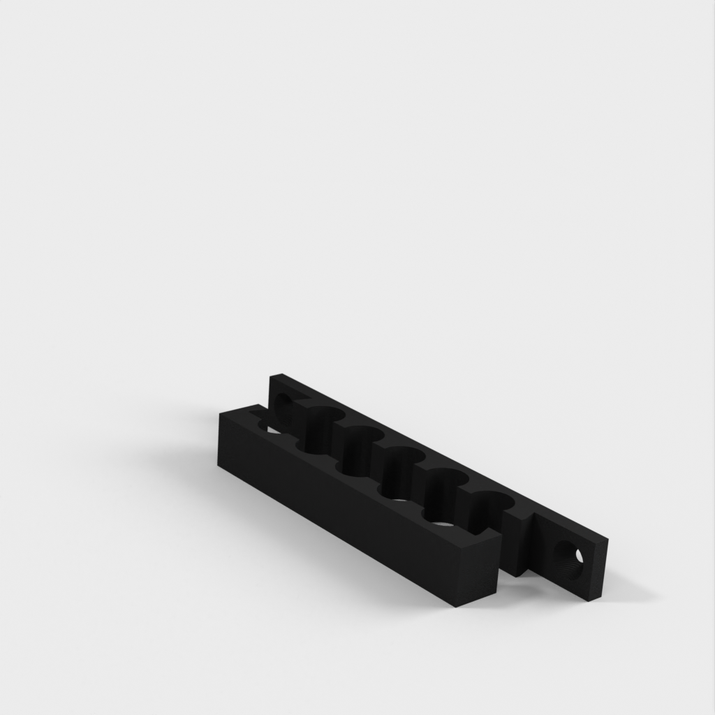 Työpöydälle asennettava kaapelijärjestäjä enintään 7 mm:n PC-kaapeleille.