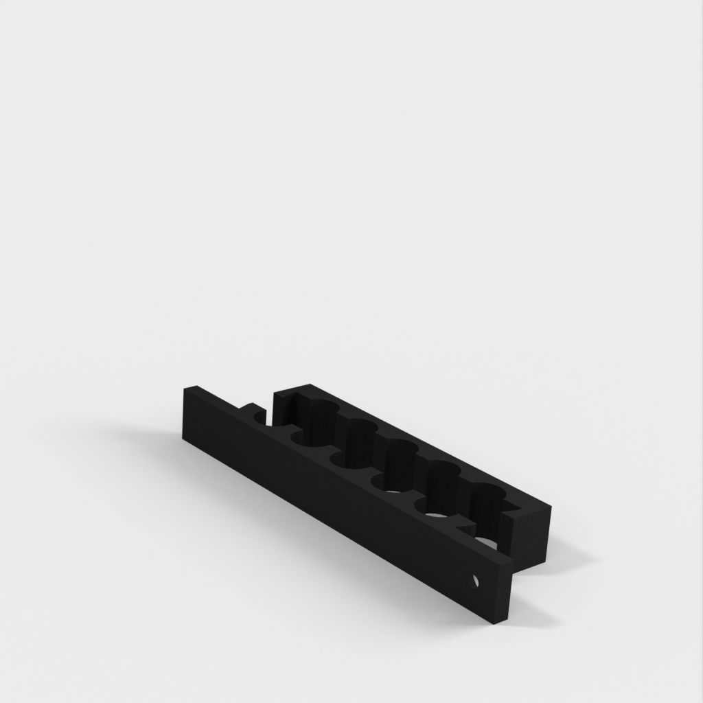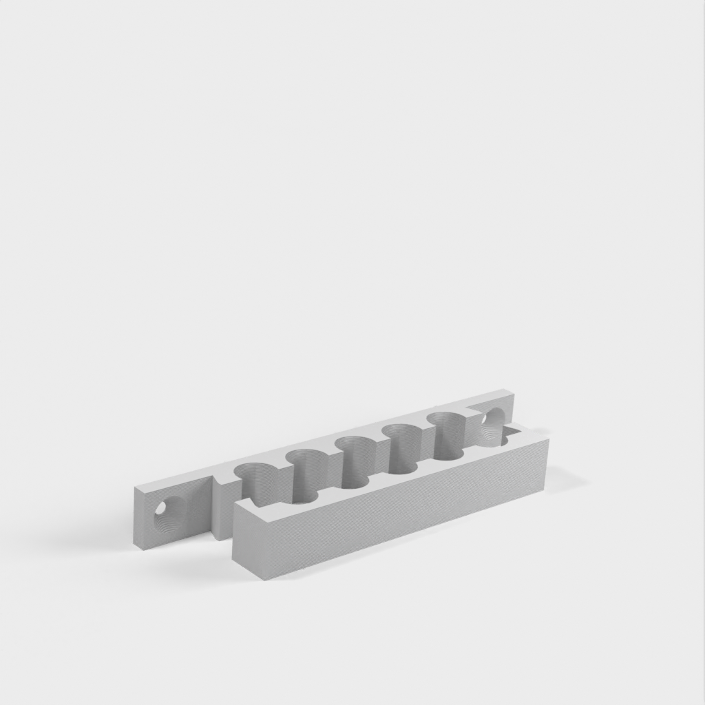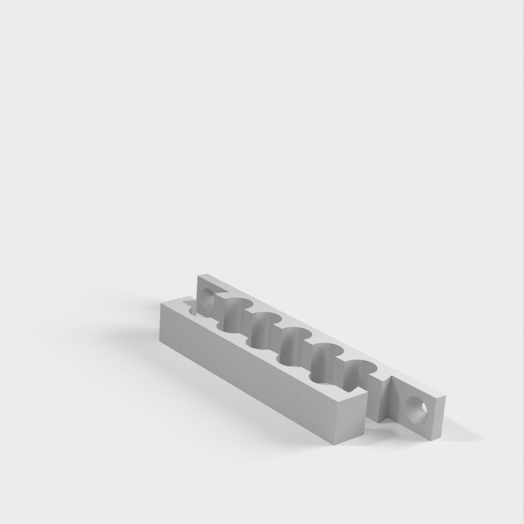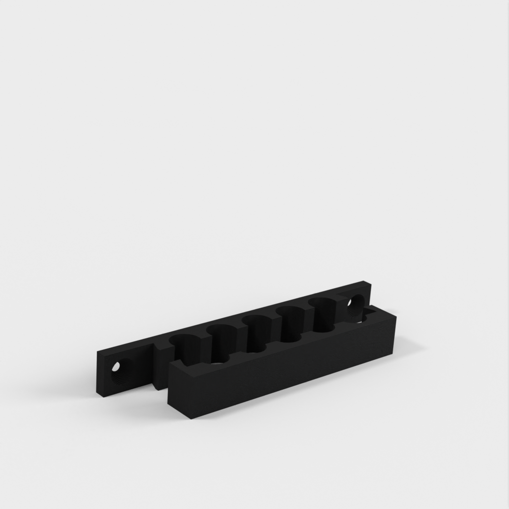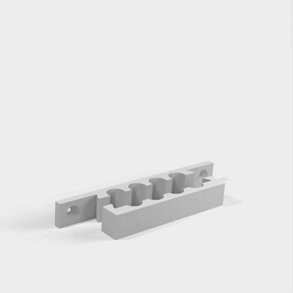 Työpöydälle asennettava kaapelijärjestäjä enintään 7 mm:n PC-kaapeleille.