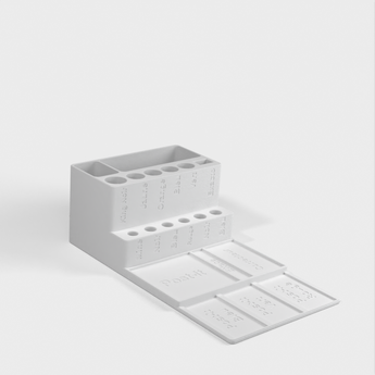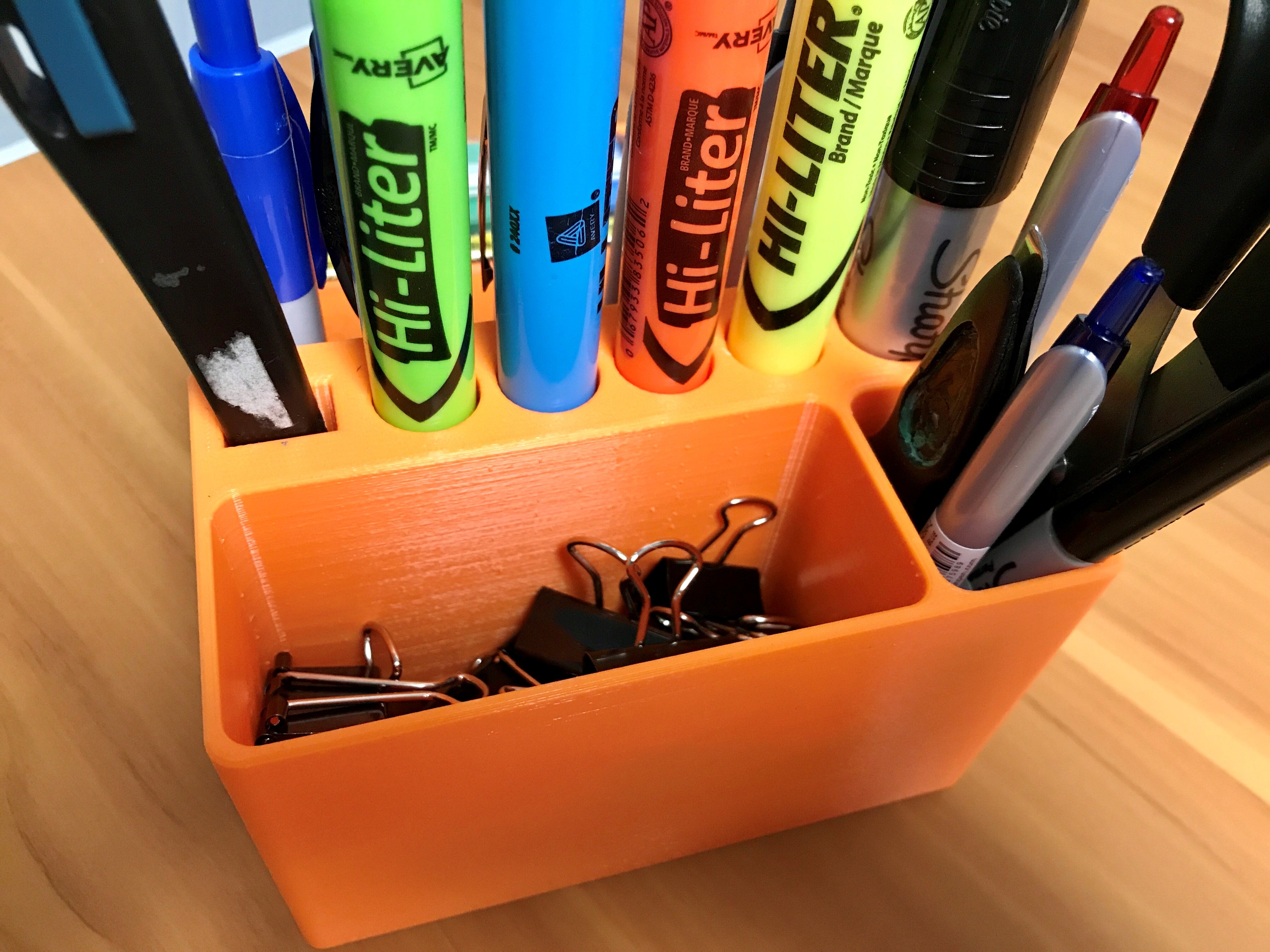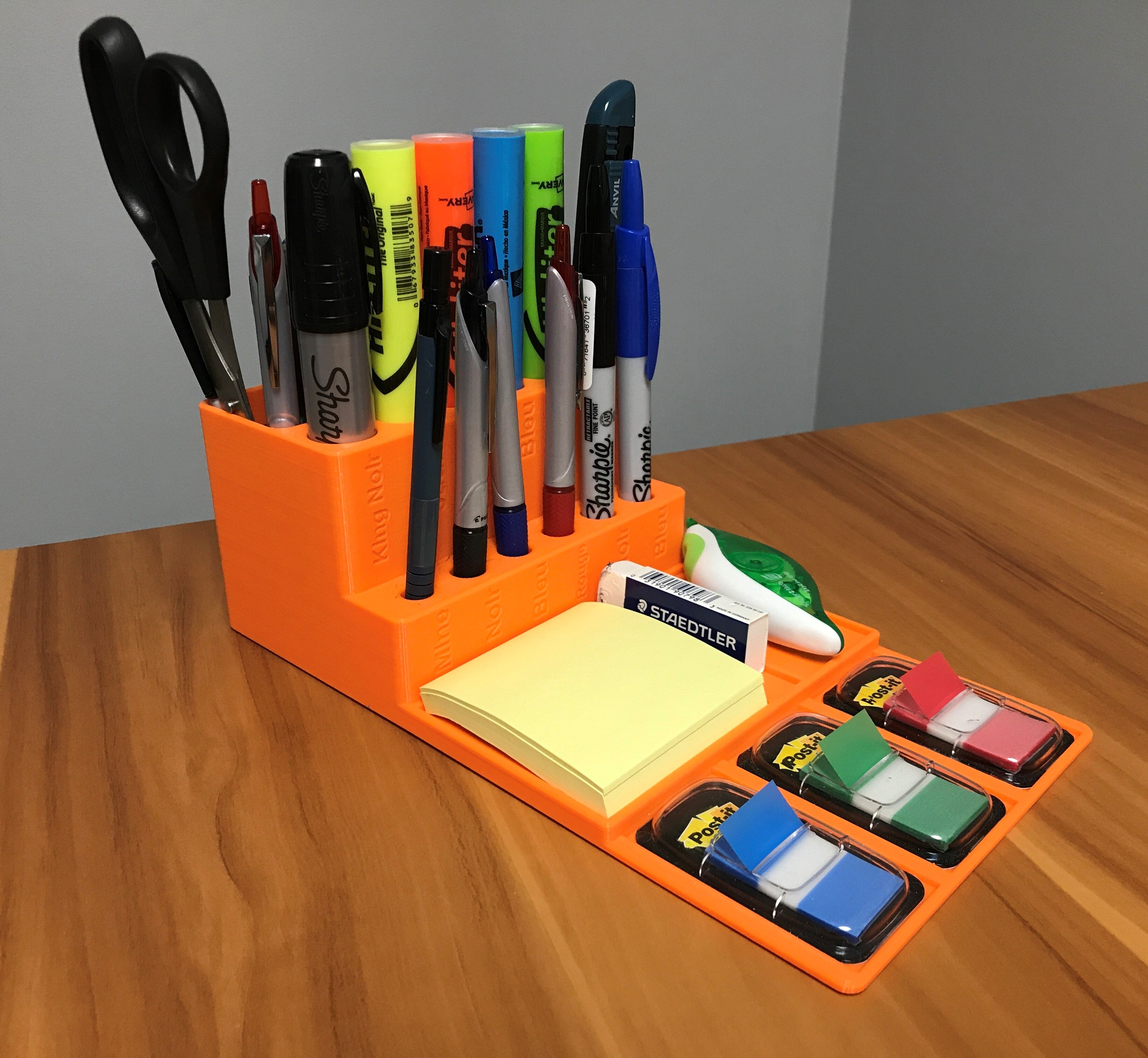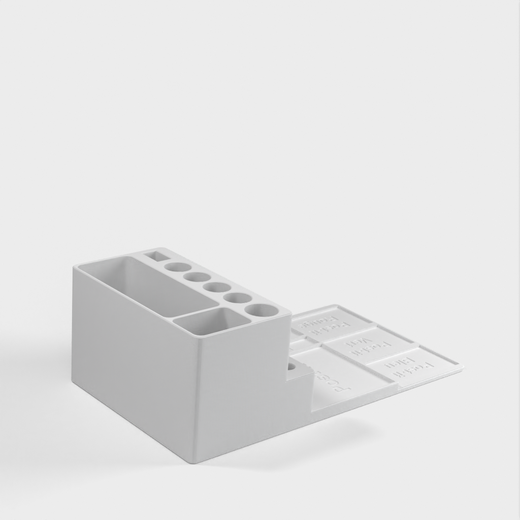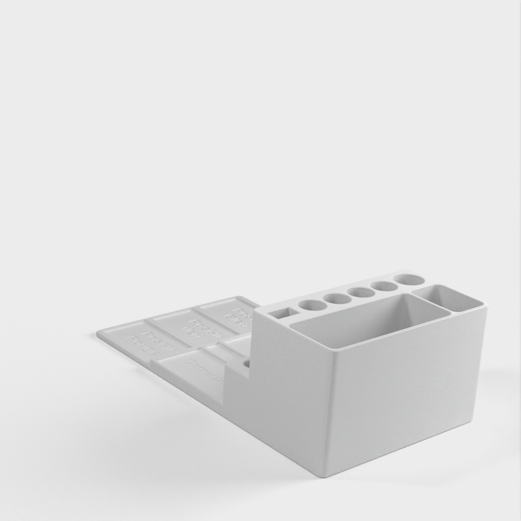 Tämä on pöytäjärjestelijä, joka on suunniteltu päivittäisten toimistotyökalujesi tehokkaaseen järjestämiseen. Tämä järjestelijä helpottaa erilaisten työkalujen, kuten kynien, lyijykynien, markkereiden ja muiden päivittäisessä toimistokäytössä välttämättömien kirjoitusvälineiden säilytystä. Pidä työpöytäsi siistinä ja järjestyksessä ja lisää tuottavuuttasi pitämällä toimistotyökalusi helposti saatavilla.
