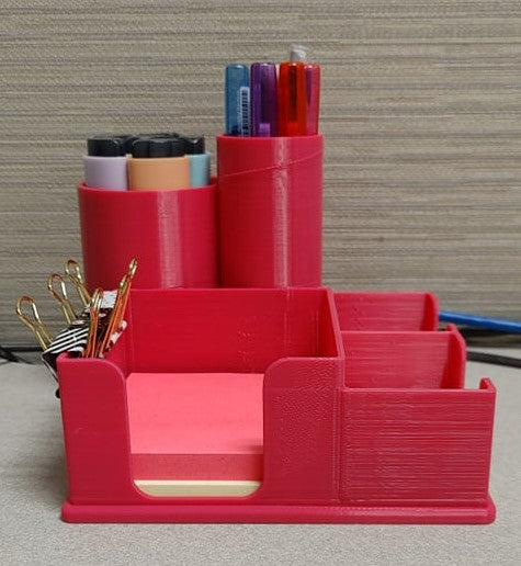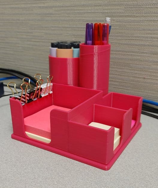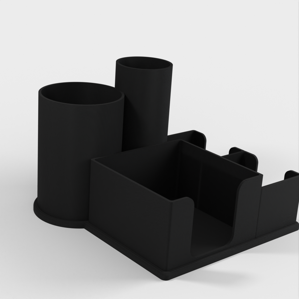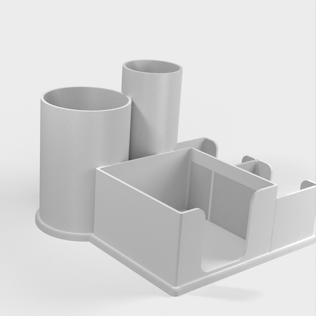 Työpöydän organisointikotelo Post-It-lapun ja kynien säilyttämiseen.