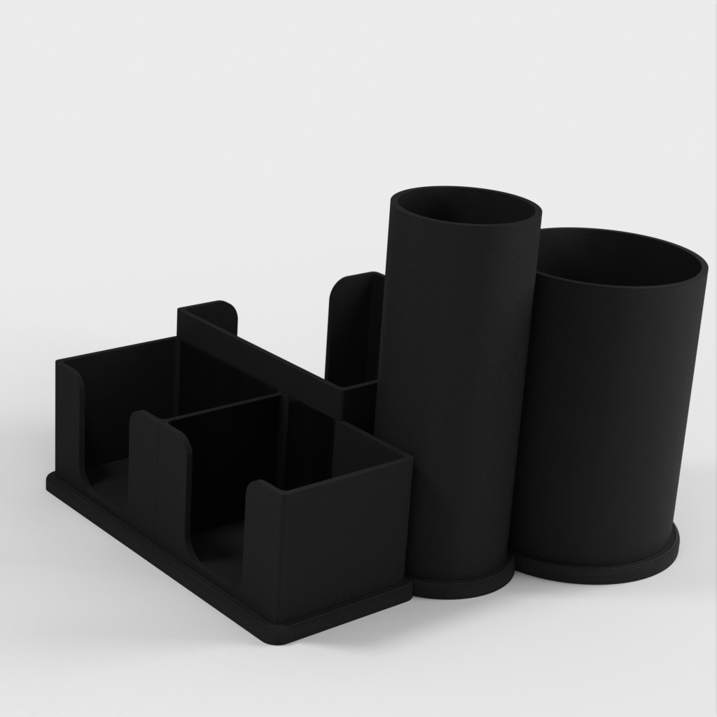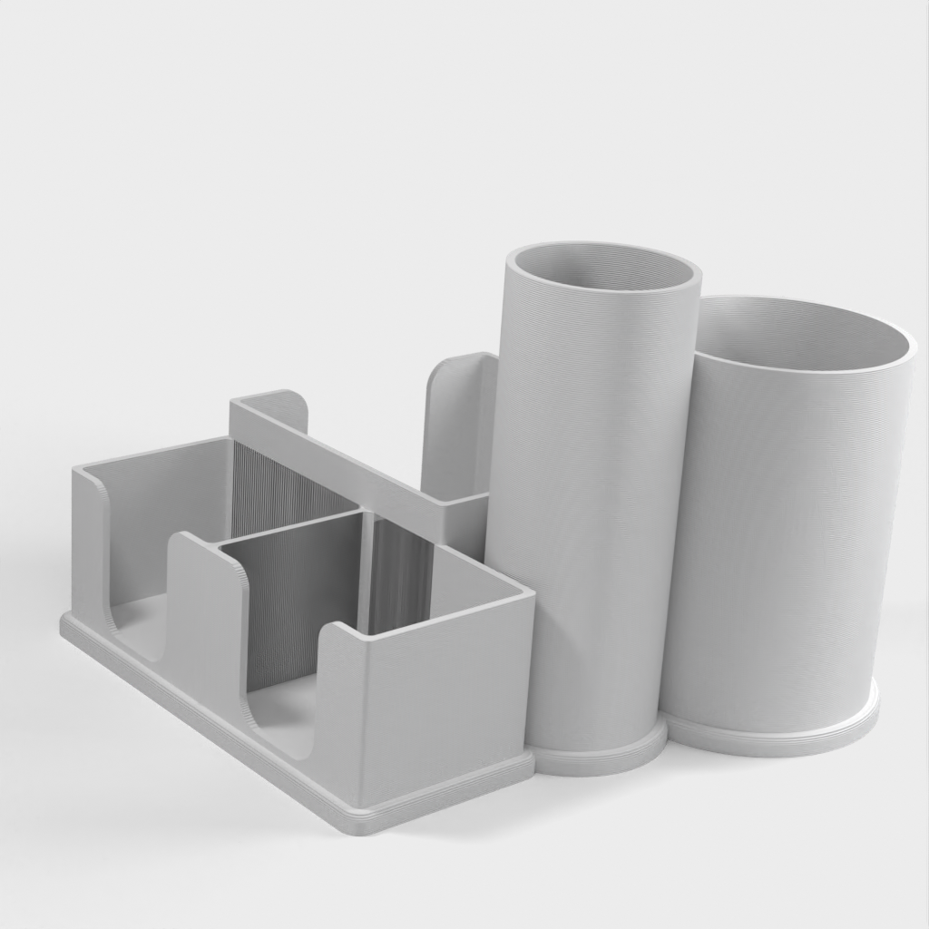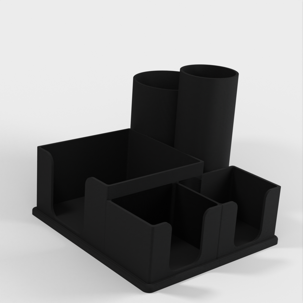 Tämä kirjoituspöydän järjestäjä on ihanteellinen säilytyslokero kynille ja kynille, ja siihen mahtuu myös kaksi erikokoista Post-It-lappua. Se on yksinkertainen ratkaisu, joka auttaa pitämään työpöytäsi siistinä ja järjestyksessä.
