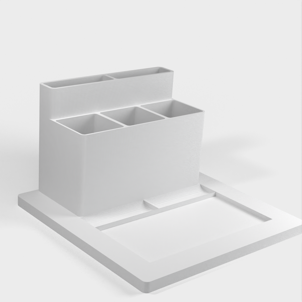 Yksinkertainen ja käytännöllinen työpöydän järjestelijä. Tämä tuote luo järjestystä ja selkeyttä kaikkiin toimistotarvikkeisiisi pitämällä ne siististi järjestettyinä ja helposti saatavilla - kaikelle on oma paikkansa.