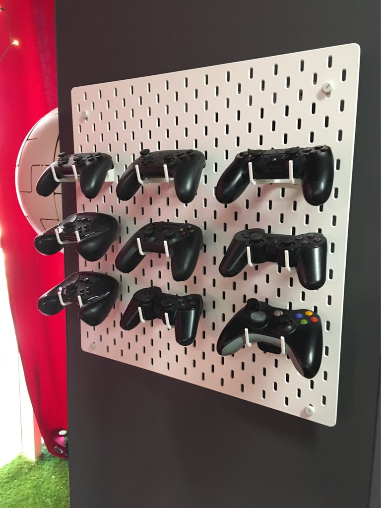 Tämä on universaali ohjainkahva, joka sopii IKEA SKÅDIS -levyihin. Monikäyttöisyytensä ansiosta se tukee useita ohjaintyyppejä, kuten Xbox 360 ja One, Playstation Dualshock 3 ja 4, Nintendo Pro, Steam, NVidia ja SteelSeries Nimbus. Se on suunniteltu kiinnitettäväksi helposti SKÅDIS-levyihin ja tarjoaa intuitiivisen ja järjestetyn tavan säilyttää ohjaimia.