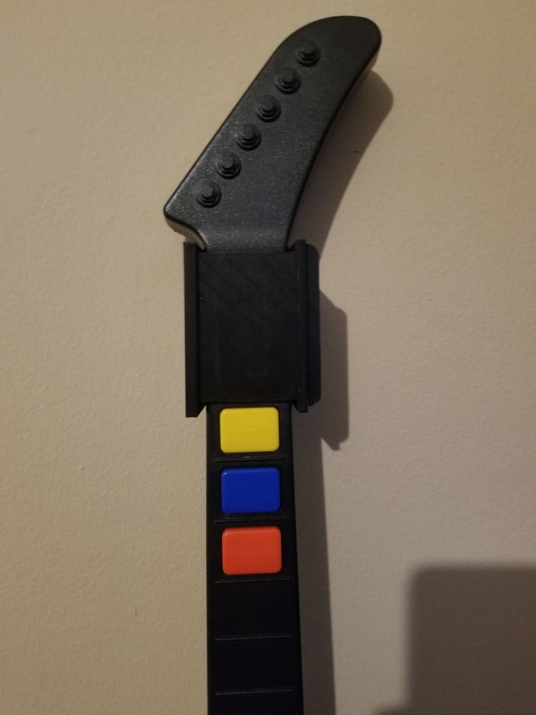 Suunniteltu ripustamaan kitarasi turvallisesti. Tässä versiossa on parannuksia sivun muodossa, joka on nyt kulmassa "puristaakseen" kitaran kaulaa, ja tila irrotettavalle levylle. Se käyttää Ace Hardwaren kaksipuolista seinäkiinnitysteippiä vahvan ja vakaan asennuksen varmistamiseksi.