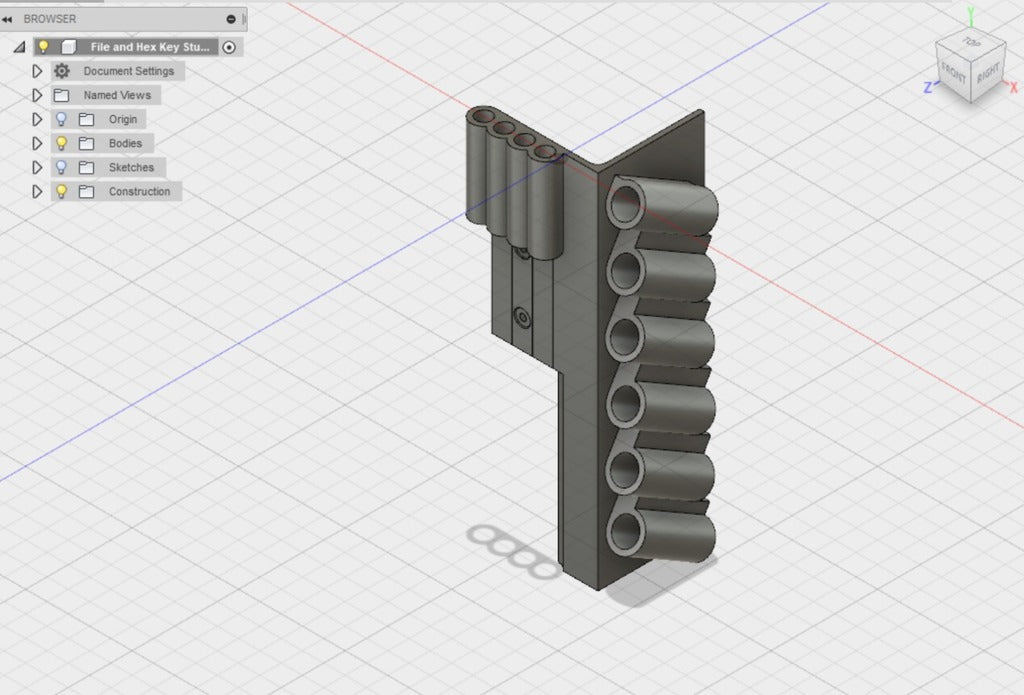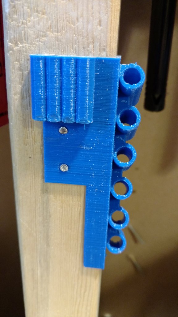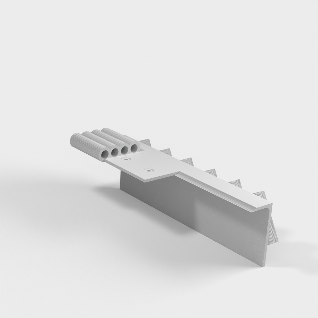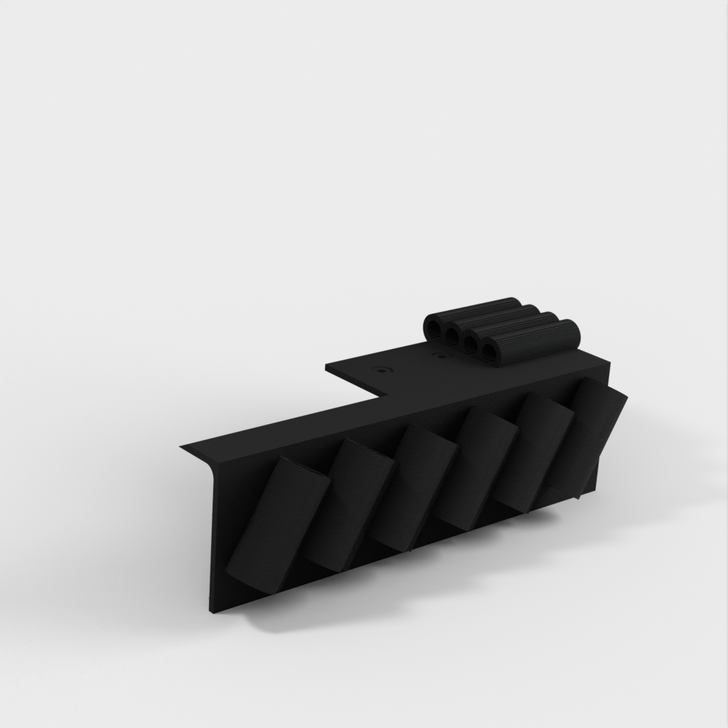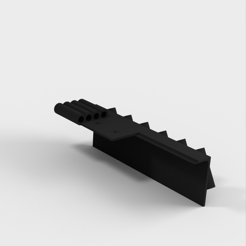 Työkalupidike, joka on suunniteltu 6-osaista neulaviilaa (kuten nämä: http://a.co/iLnJ8kb) tai vastaavia työkaluja varten, sekä 4 kuusiokoloavainta/ kuusiokoloavainta/avainta, kuten Anet A8 3D-tulostimen mukana tulevat. Kuusi aukkoa on kulmattu ja sijoitettu erilleen toisistaan, jotta työkalukahvat eivät törmäisi toisiinsa. Kaksi upotettua naulanreikää seinätolppaan kiinnittämistä varten.