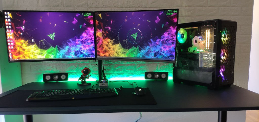 Tämä Logitech Z4 -kaiuttimien pidike, joka on suunniteltu piilottamaan kaikki kaapeliliitännät ja voidaan asentaa suoraan Ikea Bekant -pöydälle. Telineessä on 15 asteen kulma, jotta ääni suuntautuu paremmin käyttäjää kohti.