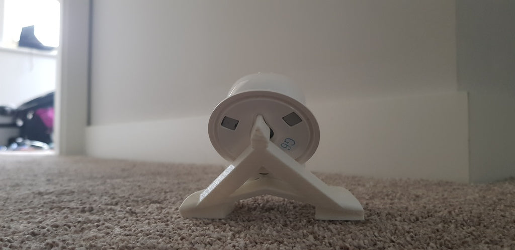 Tämä pieni kaksijalkainen Arlo Pro -jalusta antaa Arlo-kameralle ystävällisen robottimaisen ulkonäön. Suunnittelun avulla voit kiinnittää mukana tulevan magneetin tulosteeseen ja sijoittaa Arlon vapaasti sisätiloissa minne tahansa ilman poraamista.