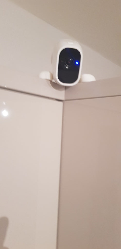 Suunnittelu on luotu sallimaan Arlo-kameran tarkennuksen alaspäin, jotta se voidaan sijoittaa pois näkyvistä turvalliseen paikkaan.