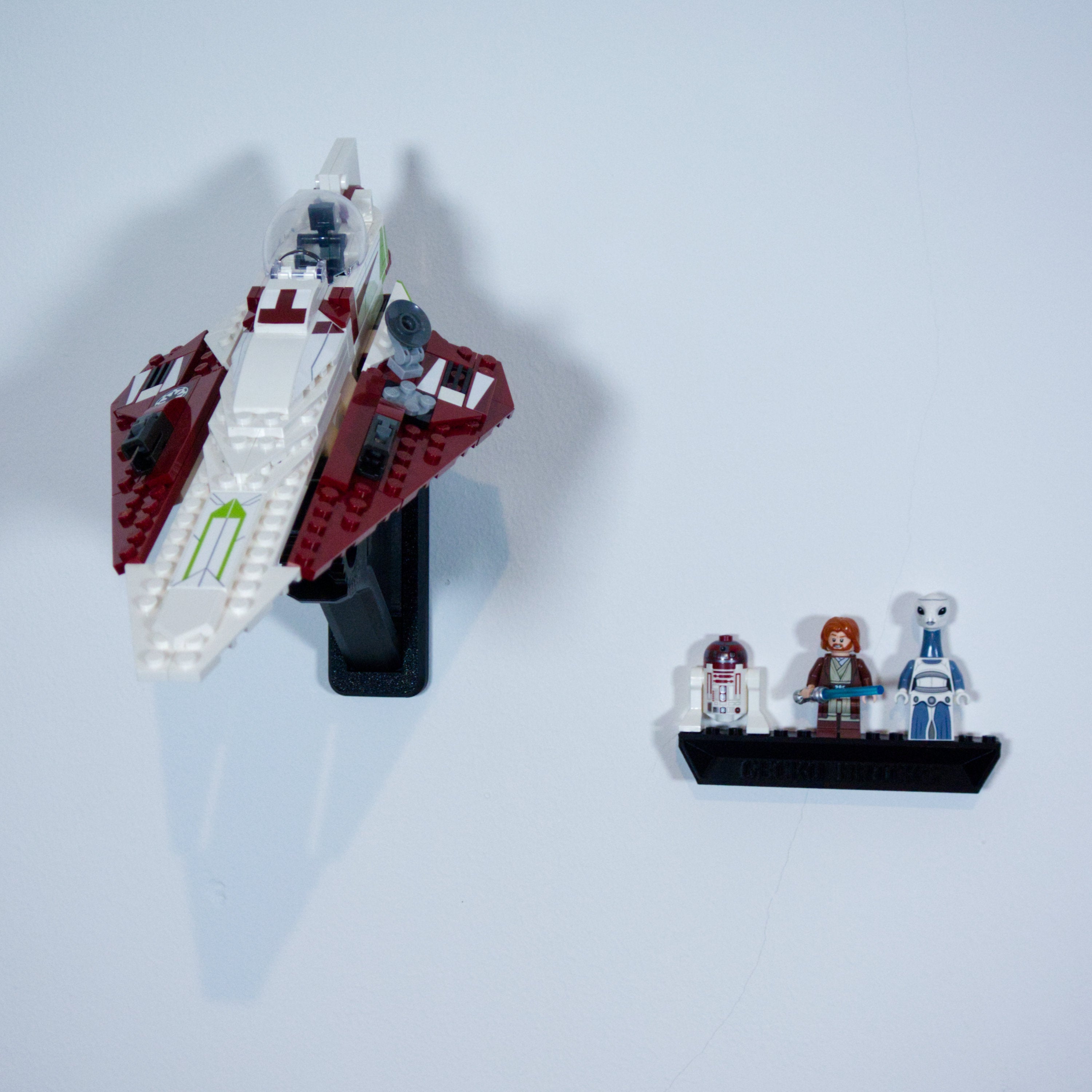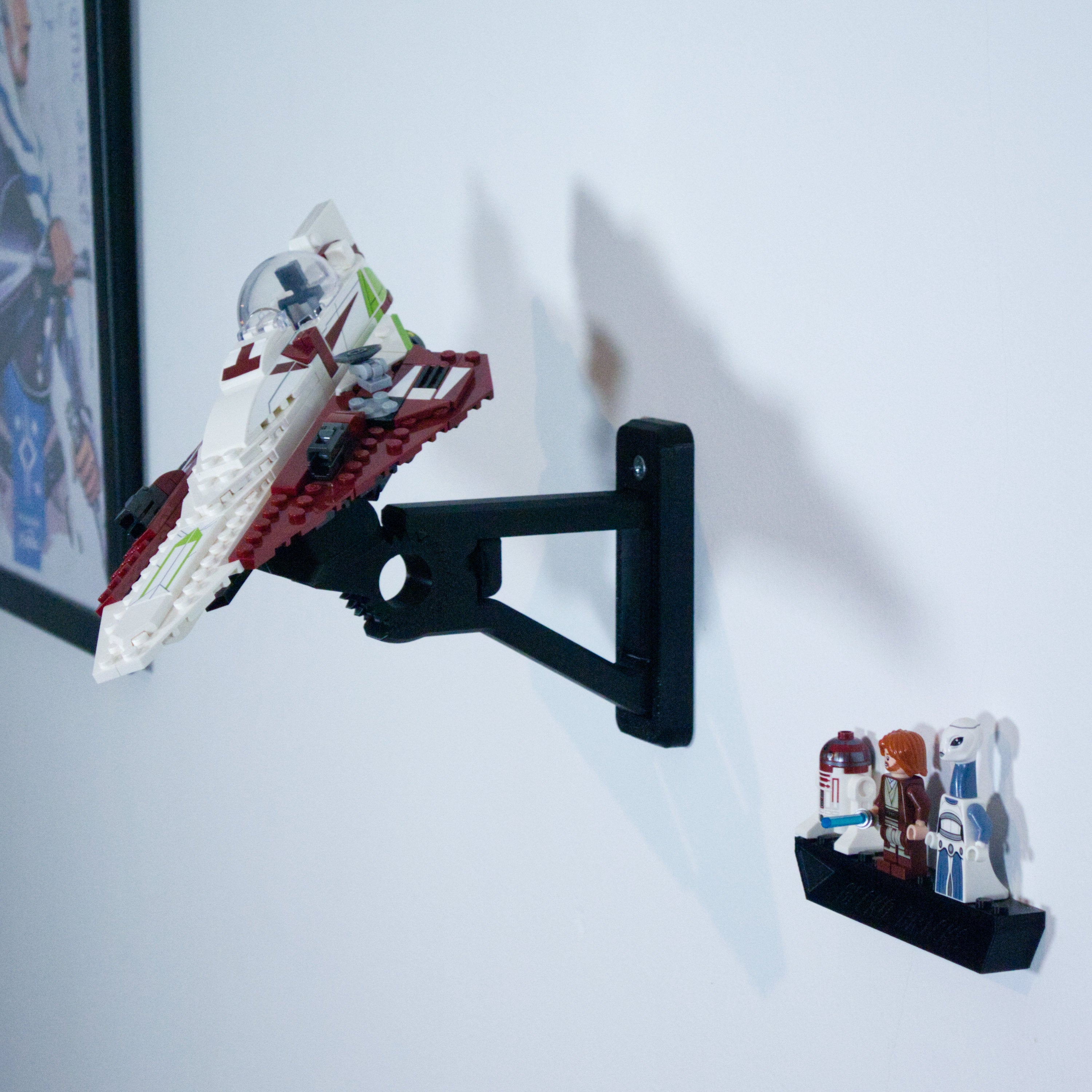 Tämä säädettävä seinäkiinnike mahdollistaa Star Wars Starfighter -mallisi esittelyn eri kulmissa. Kiinnike on suunniteltu helppoon asennukseen ja mallin nopeaan irrottamiseen. Mukana tulee erillinen pidike minihahmoille, joka kiinnitetään tukevasti ja hellävaraisesti 3M-tarralla.