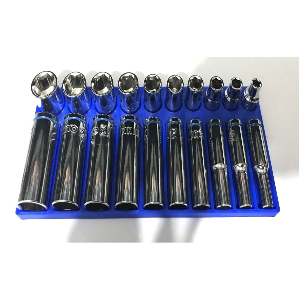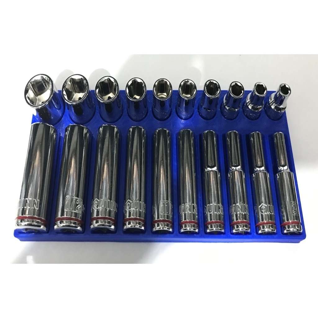Nämä 1/4 tuuman hylsyjen järjestäjät on suunniteltu parantamaan työkalupakissasi olevaa järjestystä sekä metrisille että SAE-kokoille. Ne auttavat pitämään hylsyt systemaattisesti varastoituina, mikä helpottaa niiden löytämistä ja käyttämistä työn aikana. Suunnittelu tukee sekä vakio- että syviä hylsyjä.