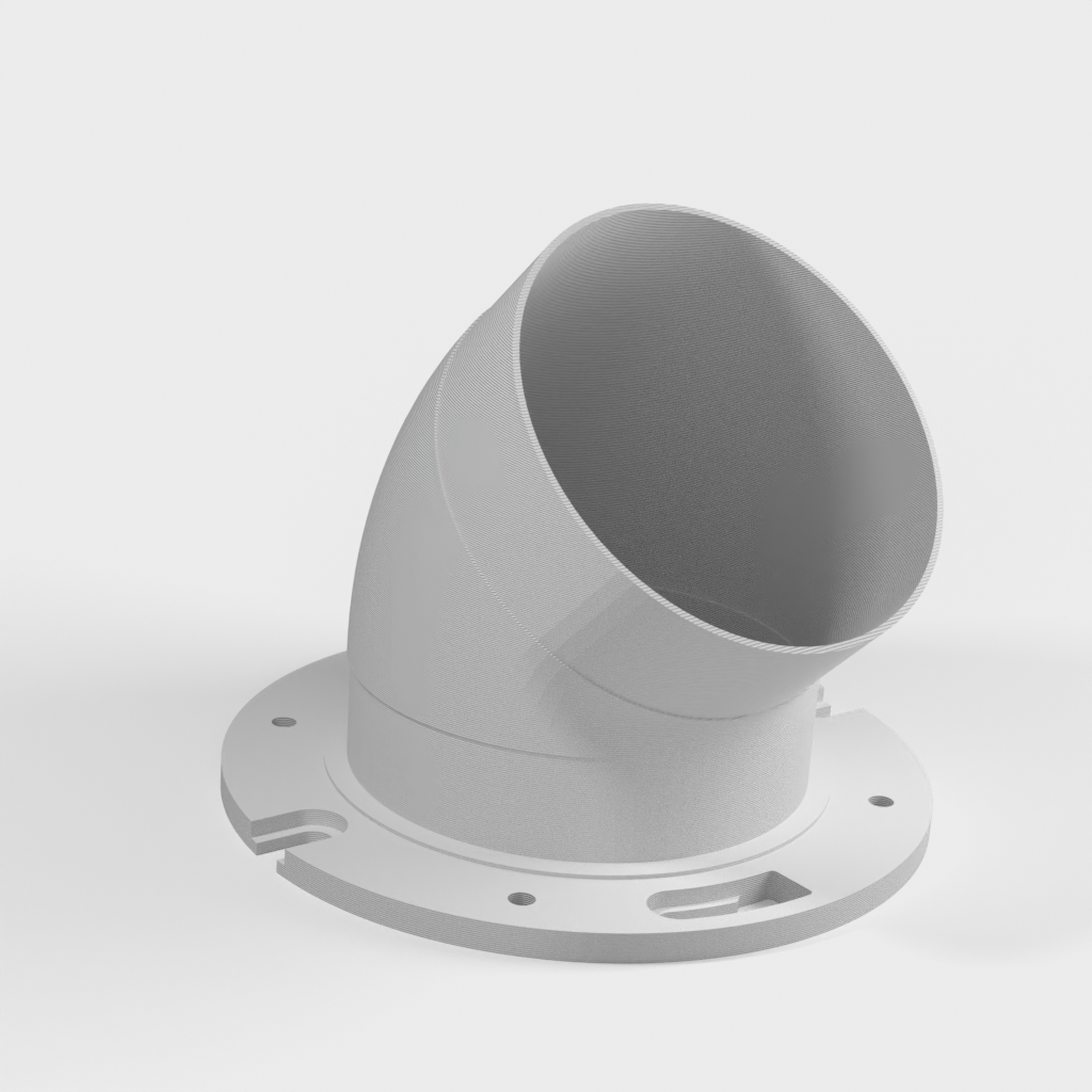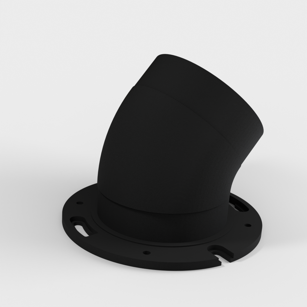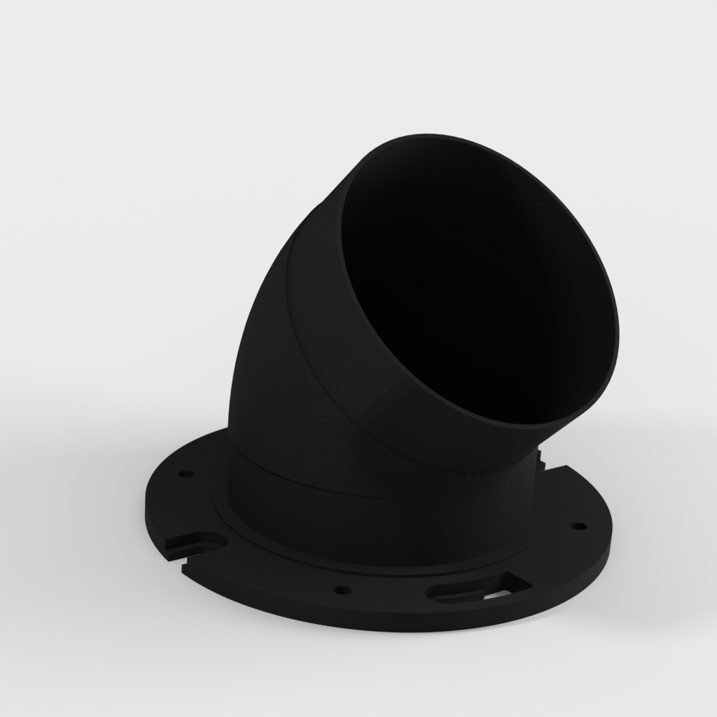 Käytännöllisen, integroidun laipan ansiosta kulmakappale on helppo kiinnittää turvallisesti eri pintoihin, kuten mittatilaustyönä tehtyyn keräyslaatikkoon tai höyläpenkkiin. Tämä mahdollistaa vakaan ja tiiviin liitoksen pölynimuriisi, mikä parantaa järjestelmän kokonaistehokkuutta. Se on ihanteellinen käytettäväksi työpajoissa, erityisesti puunjalostuksessa, jossa puhdas ja pölytön ympäristö on välttämätön sekä turvallisuuden että työn laadun kannalta.