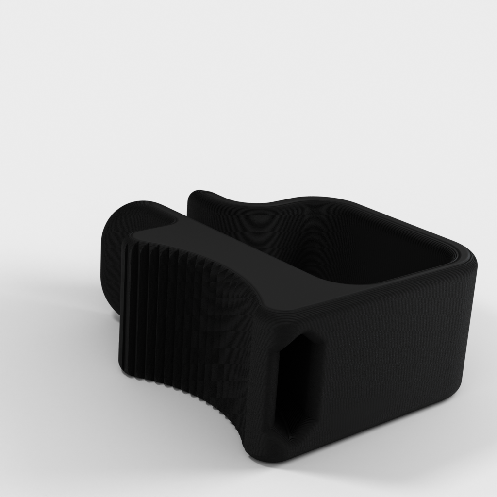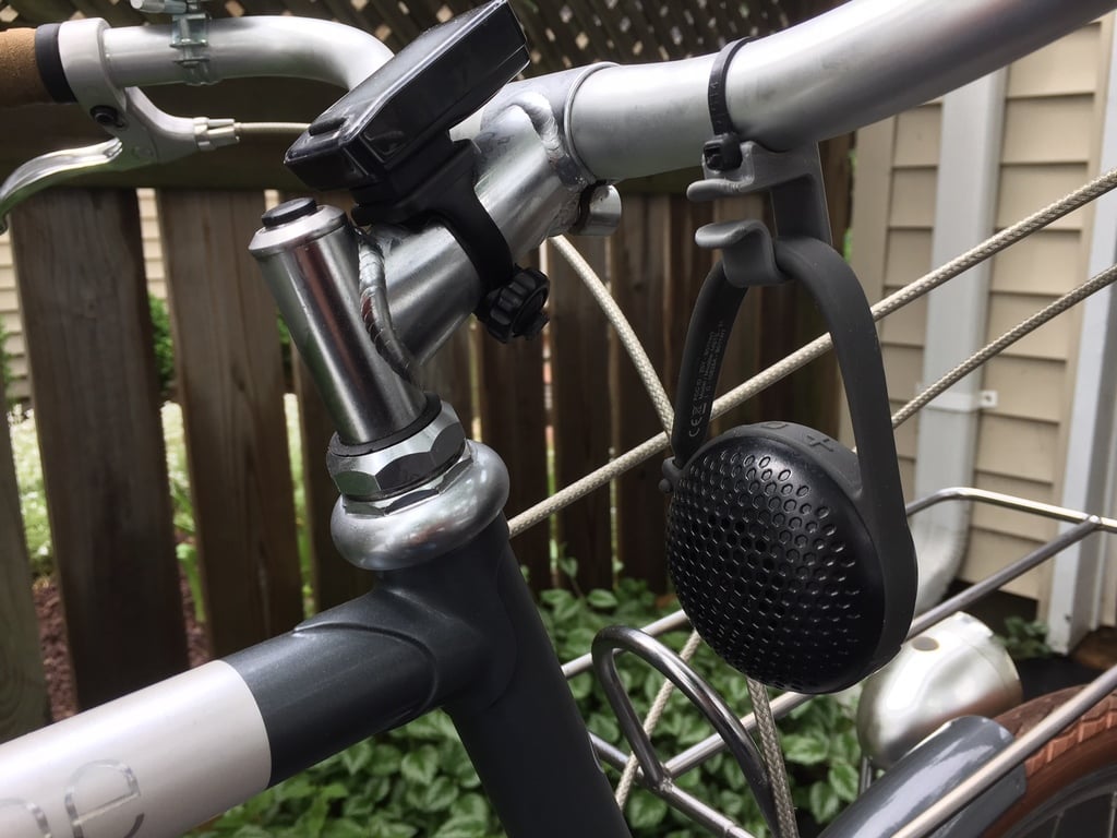 Kiinnike pitää kaiuttimen tukevasti paikallaan ja estää sitä liukumasta alas ohjaustankoa pitkin ja törmäämästä ohjaustangon putkeen. Samalla muotoilu on toteutettu siten, että kaiutin on helppo asentaa ja irrottaa tarpeen mukaan. Asennus on yksinkertaista ja vaatii vain yhden nippusiteen, jolla teline kiinnitetään tukevasti pyörän ohjaustankoon.