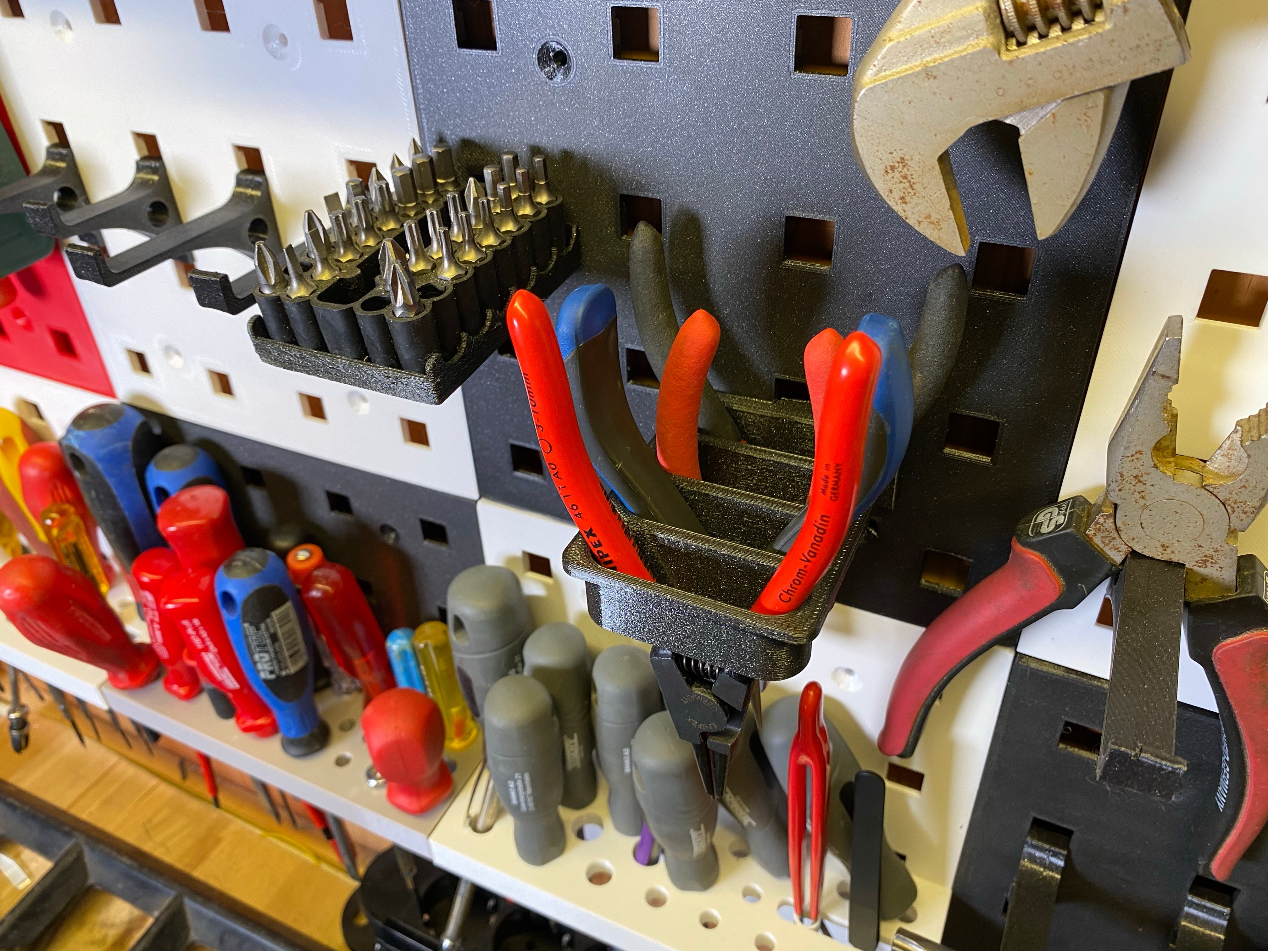 Pidike on helppo integroida Brunon järjestelmän seinään kiinnitettäviin moduuleihin, mikä varmistaa, että pihdit ovat siististi säilytettyinä ja aina käden ulottuvilla. Se on ihanteellinen selkeän ja toimivan työtilan luomiseen, jossa löydät nopeasti tarvitsemasi työkalun.