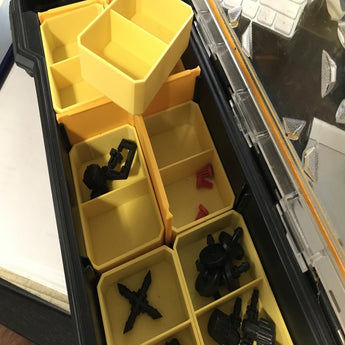 25 mm:n korkeudella nämä insertit voidaan pinota päällekkäin, mikä mahdollistaa 10 lokeron järjestäjän laajentamisen mahdollisesti 40 lokeroon 20 insertillä. 2 mm korkeat jalat varmistavat, että insertit pysyvät tukevasti järjestäjässä ja estävät niitä liikkumasta. Kun insertit on pinottu, varmistetaan, että sisältö ei läiky tai sekoitu, vaikka järjestäjää säilytettäisiin sivuttain tai ylösalaisin. Tämä auttaa pitämään pienet osat järjestyksessä ja helposti saatavilla.