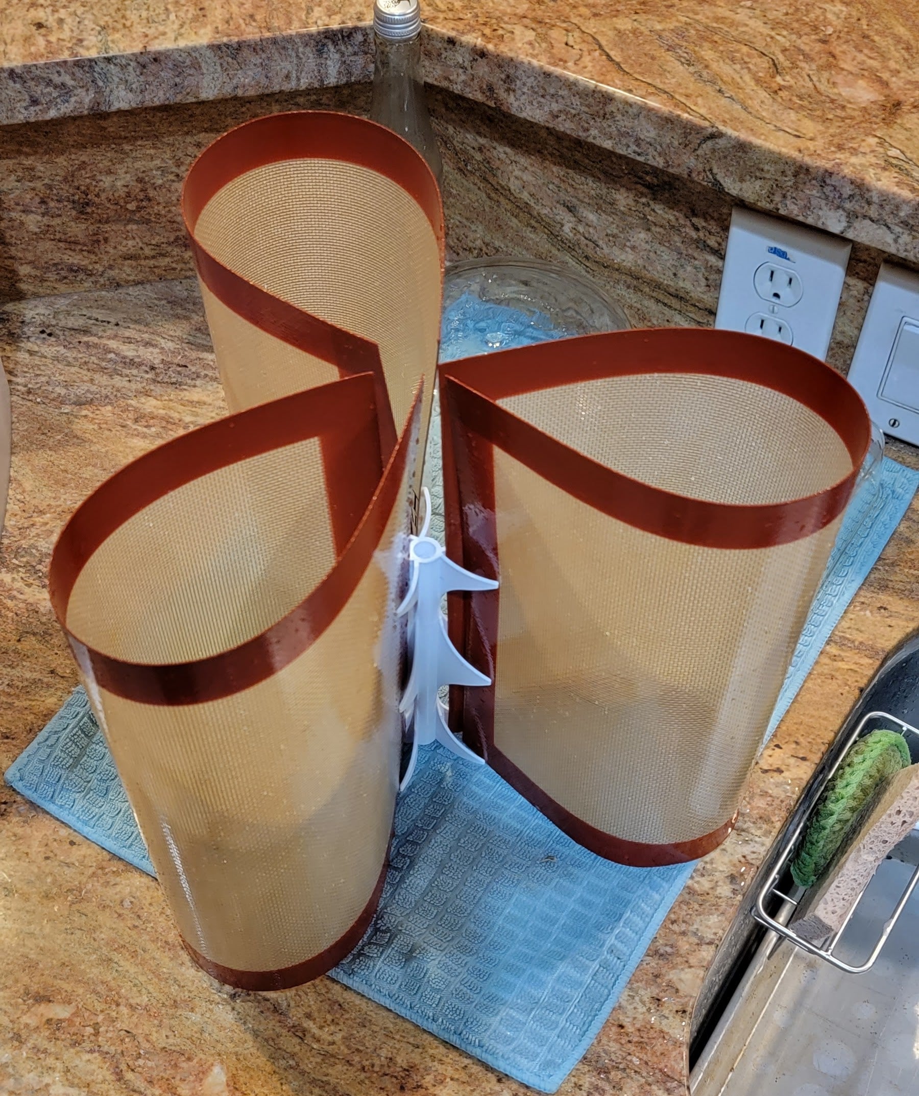 Käytätpä sitten pieniä silikonimattoja, jotka usein toimitetaan HarvestRight-pakastekuivaimien mukana, tai suurempia silikonimattoja leivinpelleille, tämä teline tarjoaa vakaan ja käytännöllisen ratkaisun. Se on yksinkertainen, mutta tehokas työkalu, joka parantaa keittiövälineidesi huoltoa.