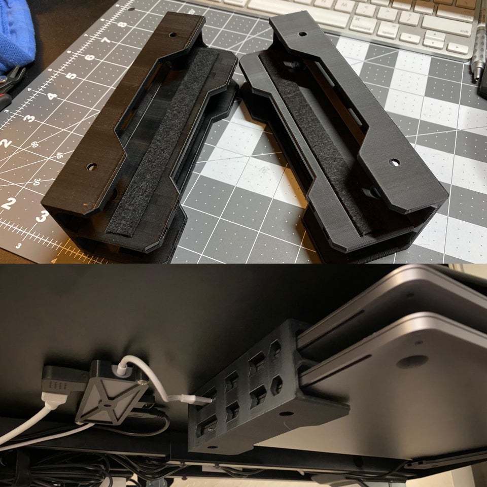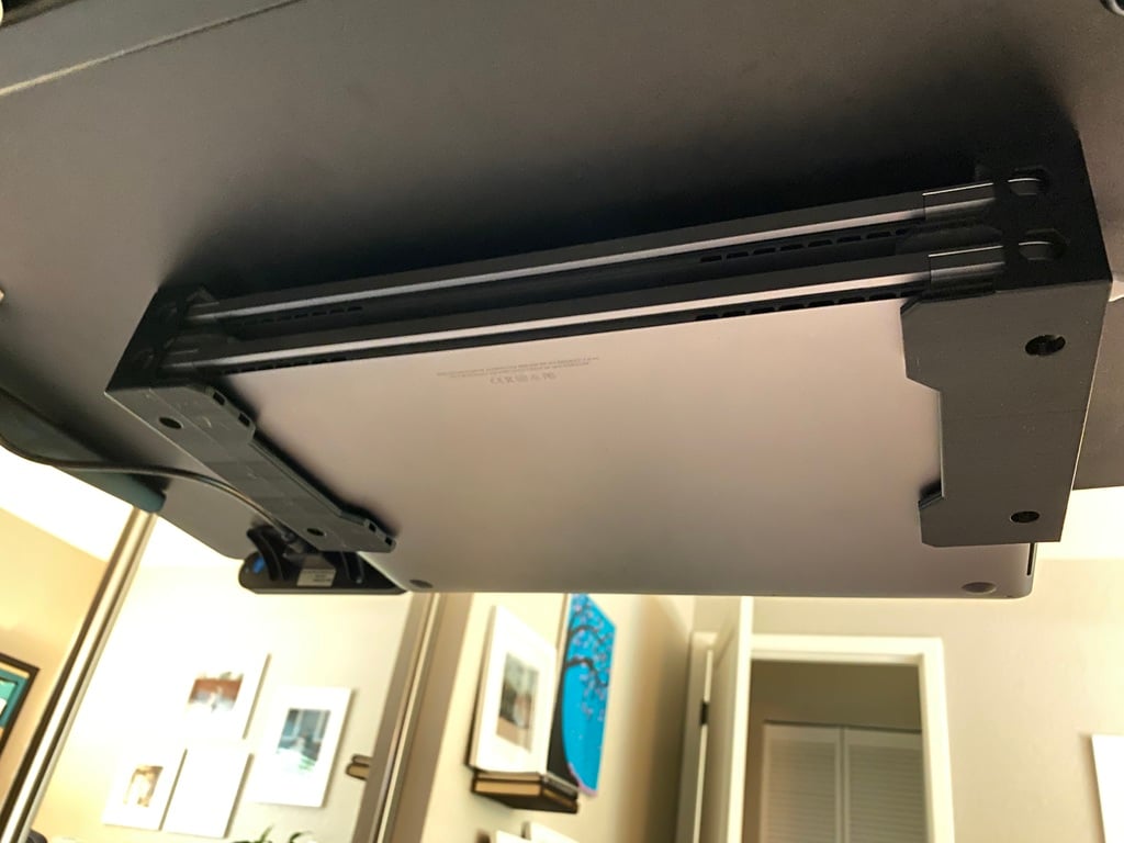 Kaksinkertainen kannettavan tietokoneen pöydän alla oleva pidike, jossa on File-välikappaleet