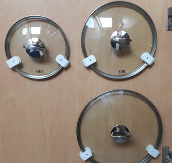 Pidike on suunniteltu pitämään erikokoisia kansia, kiitos sen harkitun 120 asteen kulman, joka takaa vakaan ja järjestetyn säilytyksen. Olipa kyseessä suuret kattilan kannet tai pienemmät pannun kannet, ne pysyvät turvallisesti paikoillaan ja ovat samalla helppoja ottaa kiinni, kun tarvitset niitä. Hanki siistimpi ja toimivampi keittiö tällä käytännöllisellä kannenpidikkeellä.