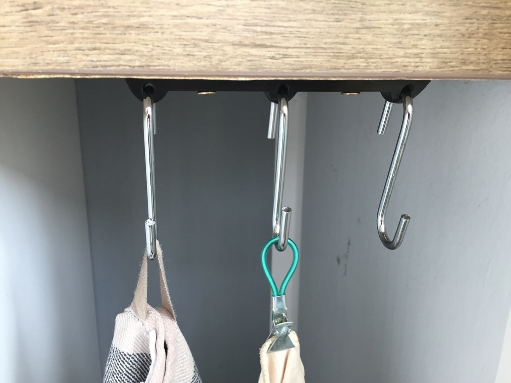 Koe järjestelmällisempi ja toimivampi keittiötila tällä älykkäällä S-koukkutelineellä. Tämä teline on suunniteltu helposti asennettavaksi keittiön pöydän tai hyllyn alle, ja sen avulla voit käyttää uudelleen olemassa olevia S-koukkuja keittiöpyyhkeiden, pyyhkeiden tai muiden pienten keittiövälineiden ripustamiseen.