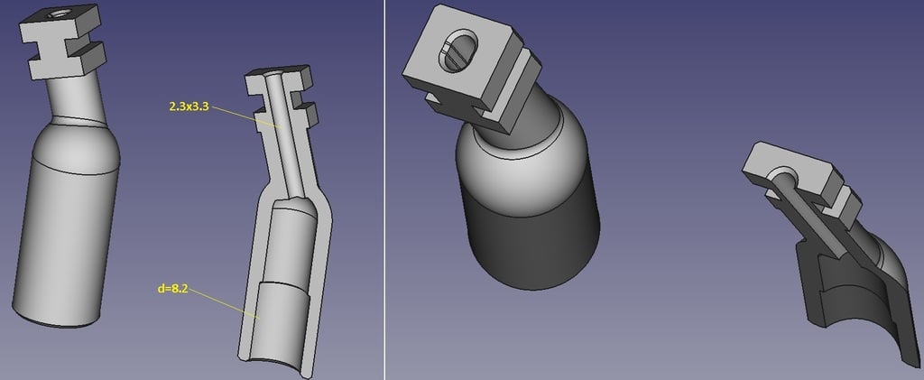 Kiinnike on mitoitettu tarkasti; kiinnikkeen läpi menevien johtojen reikä on elliptinen (2,3 x 3,3 mm) ja liittimen reiän halkaisija on 8,2 mm. Optimaalisen istuvuuden varmistamiseksi voi olla tarpeen tehdä pieniä muutoksia kuulokkeiden alkuperäiseen koteloon.