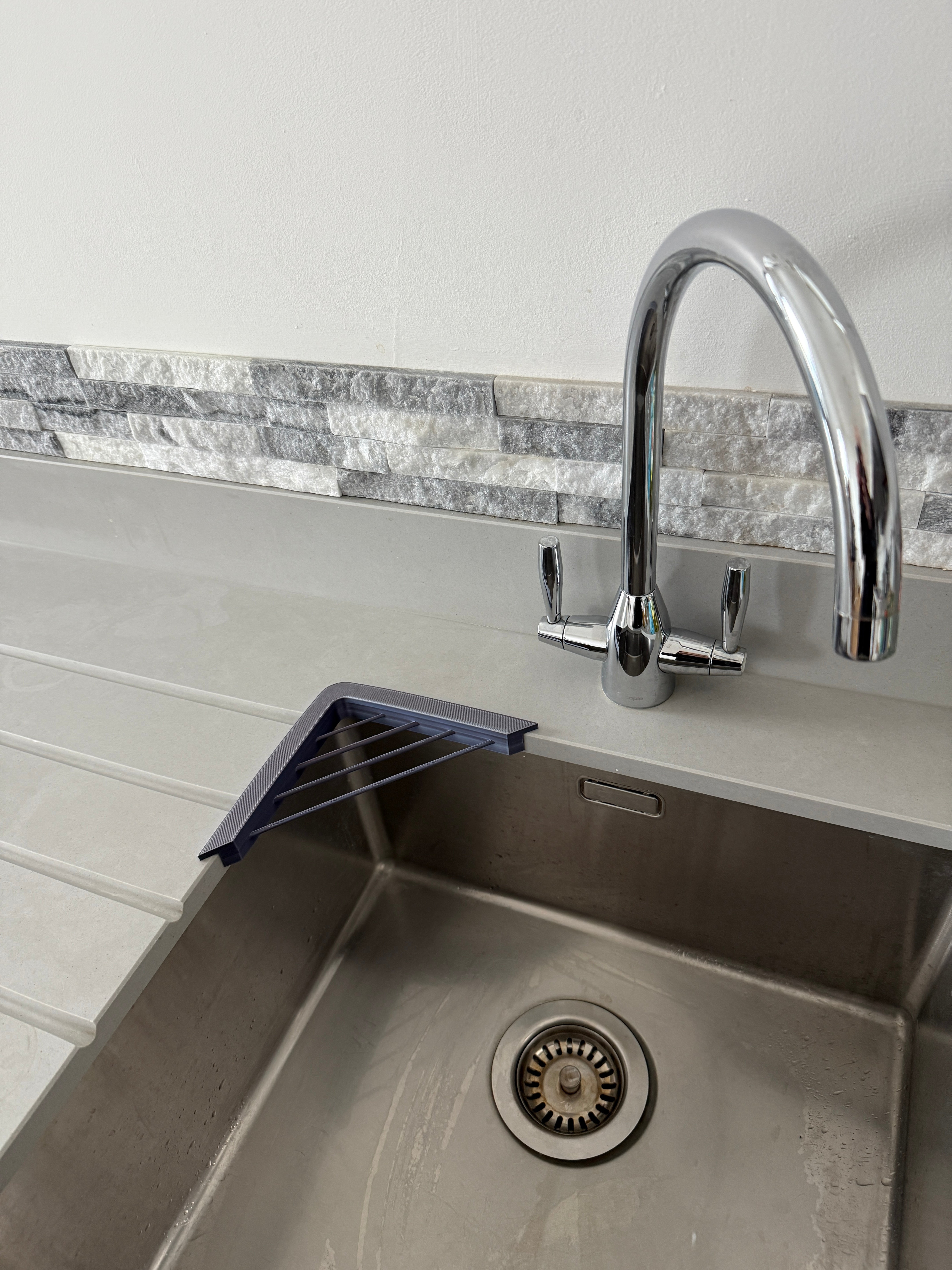 Tämä kuivausteline on suunniteltu sopimaan täydellisesti keittiöaltaasi kulmaan, ja se tarjoaa käytännöllisen ratkaisun keittiöliinojen ja sienien säilytykseen ja kuivaamiseen. Teline varmistaa, että ylimääräinen vesi tippuu suoraan altaaseen, mikä auttaa pitämään keittiön pinnat kuivina ja vapaana vesilätäköistä. Se on hyödyllinen keittiöväline, joka edistää järjestäytyneempää ja hygieenisempää keittiöympäristöä. Olipa kyseessä päivittäinen tiskaus tai siivous, tämä teline tarjoaa oman tilan pesuvälineiden tuulettamiseen.
