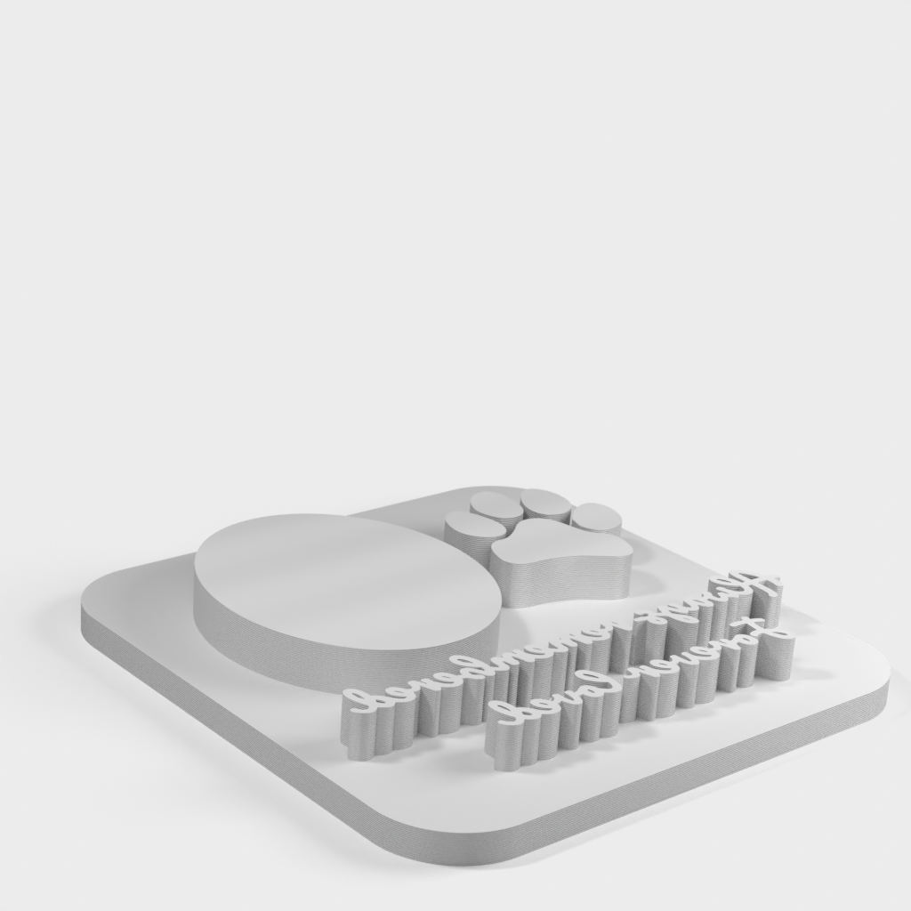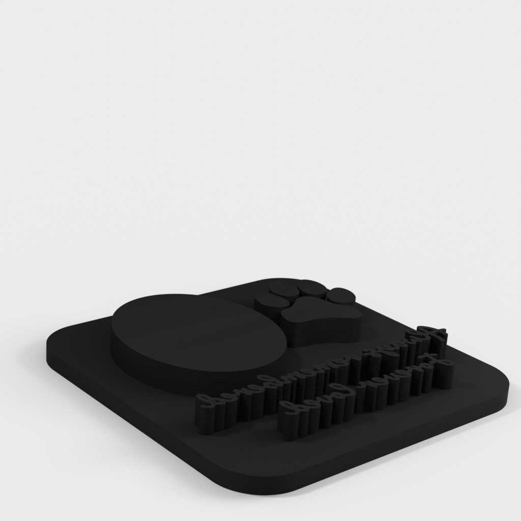 Tämän erityisesti suunnitellun muistomerkkileiman avulla voit luoda henkilökohtaisen ja pysyvän muistomerkin rakkaalle lemmikillesi. Leima on ihanteellinen käytettäväksi materiaaleissa, kuten keramiikassa ja sementissä, joten voit muotoilla ainutlaatuisen muistolaatan hautakiveksi tai erityiseksi paikaksi puutarhassa. Kohokuvioitu teksti 'Aina muistettu, ikuisesti rakastettu' ilmaisee syvää rakkautta, kun taas soikea lovi on täydellinen lemmikkisi laminoidun valokuvan lisäämiseen. Tällä leimalla voit luoda kauniin ja sydäntä lämmittävän kunnianosoituksen, joka kunnioittaa karvaisen ystäväsi muistoa.
