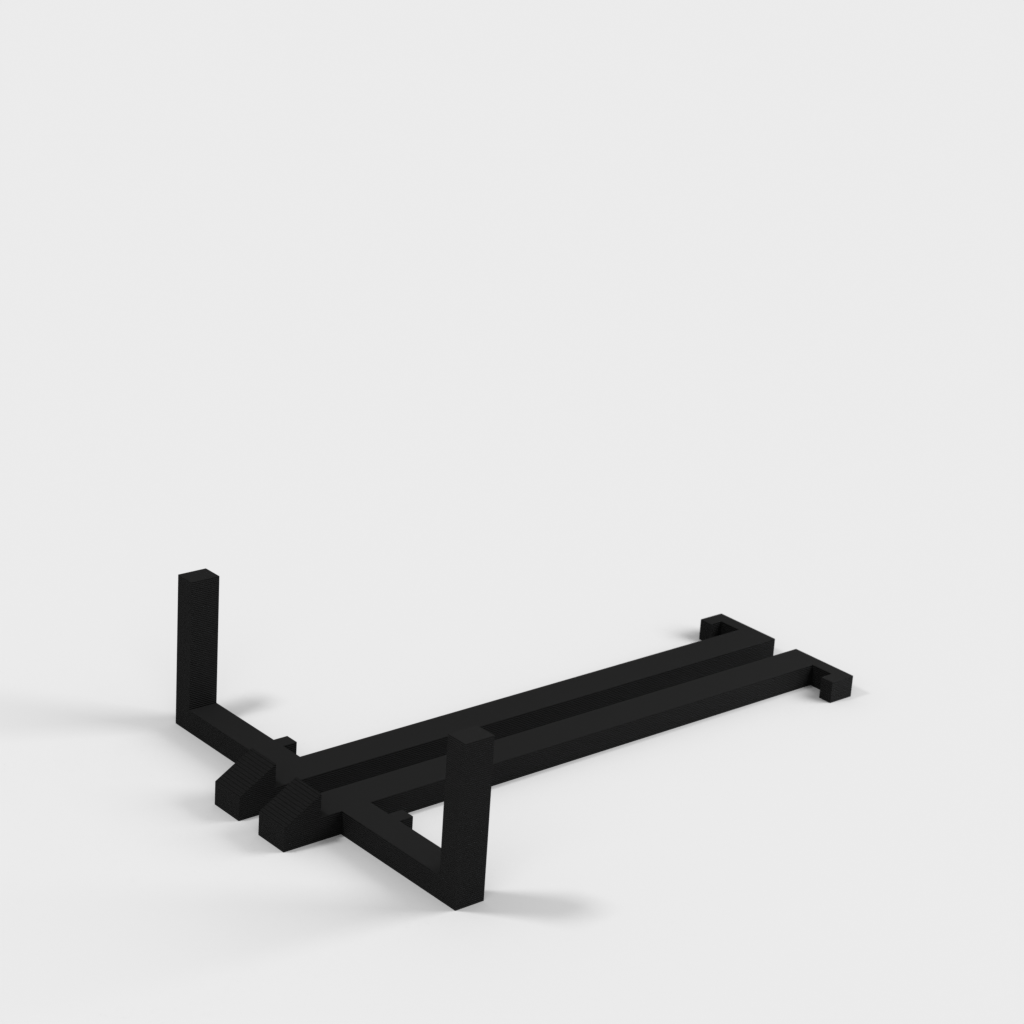 Tämä kiinnike on kehitetty asentamaan keskikaiutin huomaamattomasti LG-television alle, malli 49SK8000PLB. Ratkaisun avulla kaiutin voidaan sijoittaa poraamatta reikiä seiniin. Kiinnike pitää keskikaiuttimen samassa tasossa television alareunan kanssa, mikä edistää siistiä ilmettä olohuoneessa. Asennus tapahtuu työntämällä kiinnike television ritilään, jossa se joustavasti mukautuu ja lukittuu. Tämä tarjoaa vakaan sijoituksen kaiuttimelle, joka integroituu tyylikkäästi televisioosi.