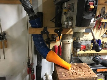 Pölynkeräyskytkin on suunniteltu luomaan vankka ja säädettävä liitos 2-1/2" Loc-Line -järjestelmäsi ja tavallisen 2" työpajaimurin välille. Tämä kytkin on ihanteellinen tehokkaan pölynkeräyksen saavuttamiseen suoraan lähteestä, kuten esimerkiksi porakoneella työskenneltäessä. Tiiviin ja vakaan liitännän varmistaminen edistää merkittävästi puhtaampaa työympäristöä ja parantaa ilmanlaatua työpajassasi. Kapeneva sisäinen rakenne varmistaa, että imuletkusi (jonka ulkohalkaisija on noin 44-46 mm) pysyy tukevasti paikallaan, mutta on silti helppo irrottaa käytön jälkeen. Tämä optimoi imun ja pitää työalueesi vapaana lastuista ja pölystä, mikä parantaa sekä turvallisuutta että tarkkuutta työskennellessäsi sähkötyökaluilla.