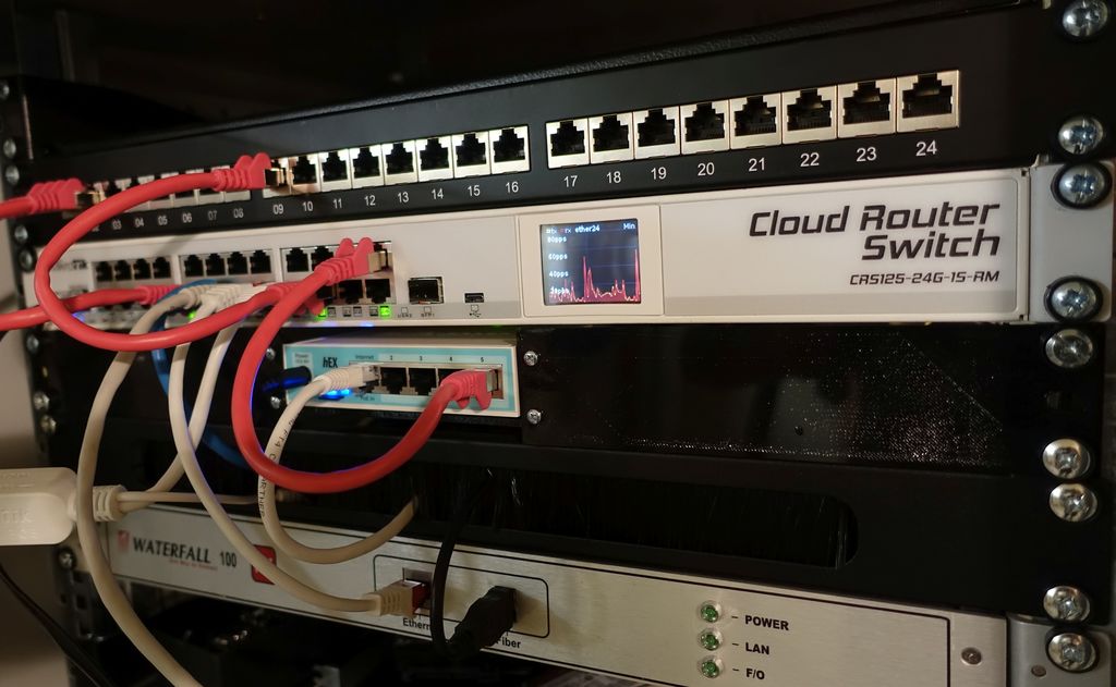 Tämä räkkiasennus on suunniteltu integroimaan MikroTik hEX (S) -yksiköt tavalliseen 19 tuuman räkkiympäristöön. Se tarjoaa käytännöllisen ratkaisun verkko komponenttien järjestämiseen ja tilan optimointiin palvelinkaapissasi tai verkkoasennuksessasi. Vaikka se on samanlaisten asennusten kevyempi versio, se tarjoaa toimivan tavan kiinnittää MikroTik hEX (S) -reitittimesi. Se sopii erityisen hyvin asennuksiin, joissa laite pysyy pääosin staattisena eikä kaapelin toistuvia säätöjä tarvita. Tämä asennus auttaa ylläpitämään siistiä ja ammattimaista ulkonäköä verkko infrastruktuurillesi.