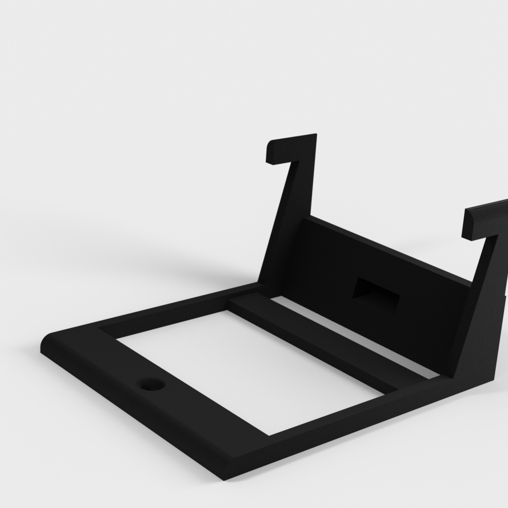 Minimalistinen seinään asennettava pidike pelihiirelle, jossa on paikka donglelle