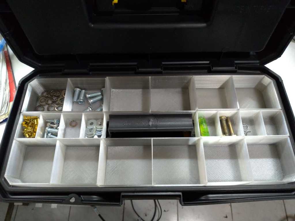 Tämä 16 tuuman (41 cm) modulaarinen työkalujärjestäjä on suunniteltu optimoimaan työkalujesi säilytys. Se koostuu neljästä erillisestä osasta, jotka tarjoavat joustavuutta työkalutilasi sisustamiseen erityistarpeiden mukaan. Työskenteletpä käsityöläisenä, olet innokas tee-se-itse-harrastaja tai haluat vain pitää laitteistosi järjestyksessä, tämä järjestäjä tarjoaa käytännöllisen ratkaisun. Se auttaa pitämään työkalusi, kuten ruuvimeisselit, pihdit ja sähköruuvimeisselin, järjestyksessä, jolloin on helppo löytää tarvitsemasi ilman hukka-aikaa. Tukeva rakenne varmistaa pitkäaikaisen käytön, mikä tekee siitä luotettavan valinnan monenlaisiin tehtäviin. Tehokkaan suunnittelunsa ansiosta järjestäjä soveltuu sekä harrastusprojekteihin että ammattikäyttöön, ja se voidaan helposti integroida olemassa oleviin työkalulaatikoihin tai -laukkuihin.