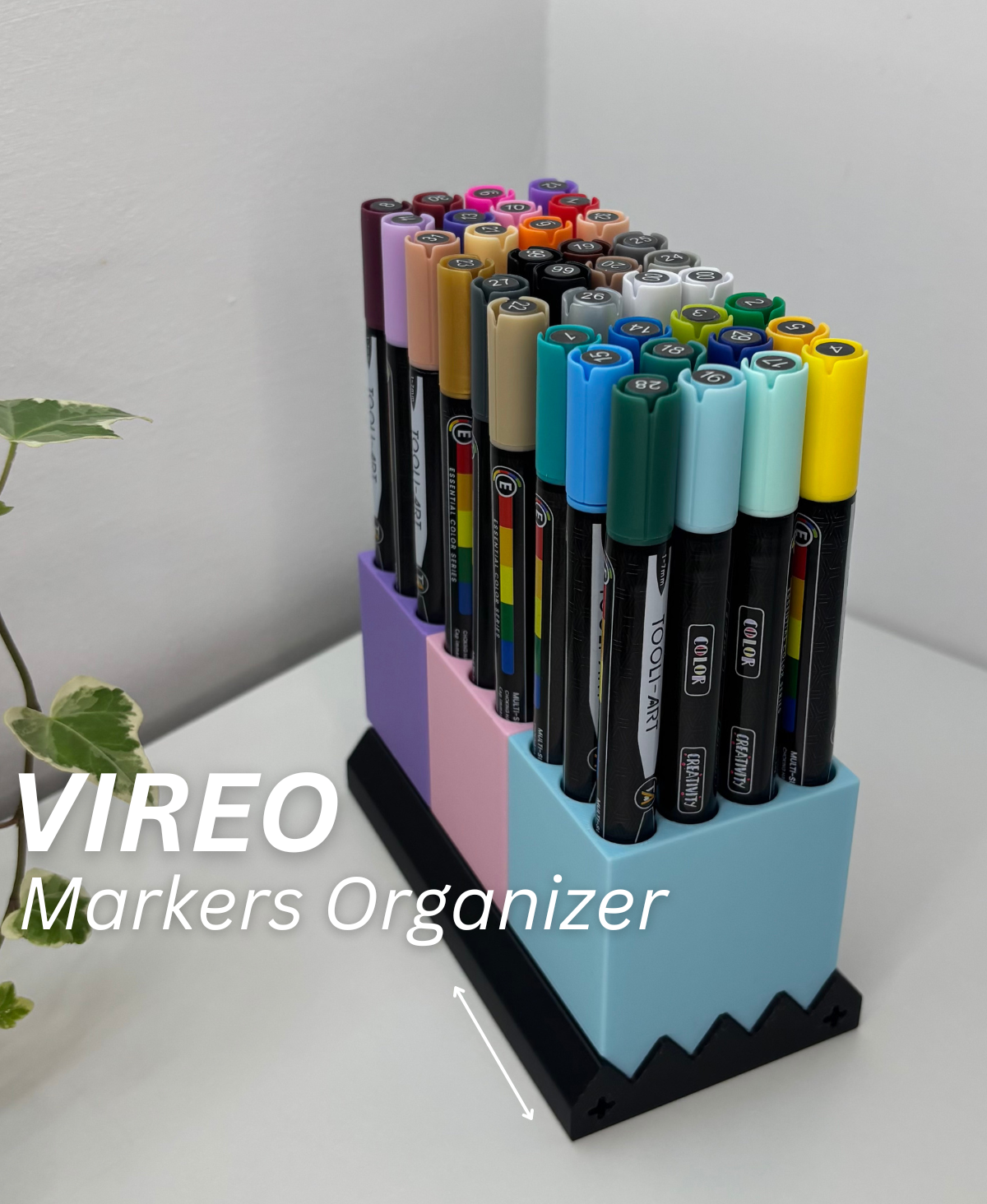 Tutustu tehokkaaseen tapaan järjestää työtilasi tällä modulaarisella merkintäjärjestäjällä. Tämä 3D-tulostettu kynäteline on suunniteltu luomaan järjestystä ja optimoimaan tilaa työpöydälläsi, ja se on käytännöllinen työpöytäjärjestäjä, joka auttaa sinua pitämään kirjoitustarvikkeesi selkeästi koossa. Se koostuu pohjasta ja erillisistä kynätelineosista, jotka liukuvat tarkasti yhteen VVVV-muotoisten urien kautta, mikä varmistaa vakaan ja saumattoman asennuksen.