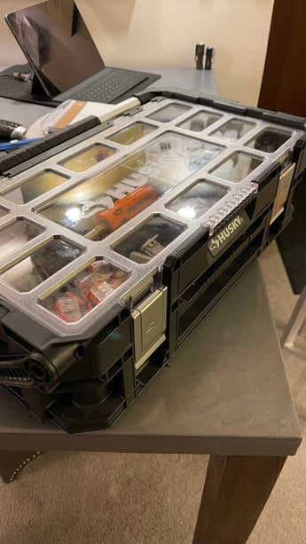 Suunniteltu pinottavaksi säiliöksi, se tarjoaa joustavuutta maksimoida tilan olemassa olevan säilytysastian sisällä ja parantaa yleistä rakennetta. Se on ihanteellinen kaikille, jotka haluavat organisoidumman pienten osien säilytyksen ja siten parantaa työnkulkunsa tehokkuutta riippumatta siitä, onko se työpajassa, autotallissa vai harrastekäytössä. Tämä lisäys auttaa muuttamaan Husky-työkalupakkisi entistä toimivammaksi ja siistimmäksi järjestelmäksi.