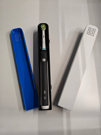 Tutustu tähän käytännölliseen matkakoteloon, joka on luotu suojaamaan Oral-B-sähköhammasharjaasi matkoilla tai järjestettyä säilytystä varten kotona. Kotelo on suunniteltu pitämään hammasharja turvallisesti paikallaan helpolla napsautustoiminnolla, joka takaa vakauden ja estää liikkeen. Kansi napsahtaa tukevasti paikalleen ja tarjoaa kestävän suojan ulkoisilta vaikutuksilta. Kun haluat käyttää hammasharjaasi, se on helppo irrottaa yksinkertaisella painalluksella. Kotelon uusin versio sisältää parannetun pohjan, jossa on kapeampi ja joustavampi pidike, joka optimoi entisestään istuvuuden ja kestävyyden päivittäistä käyttöä ja mahdollisia iskuja vastaan.