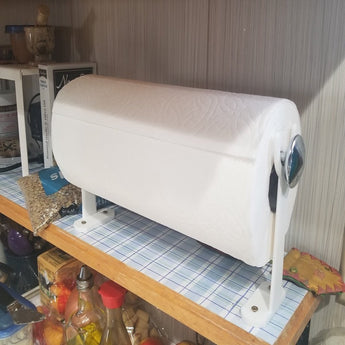 Pidike tarjoaa vakaan pohjan talouspaperillesi, ja se voidaan sijoittaa mille tahansa vaakasuoralle pinnalle keittiössä, työpajassa tai missä tahansa, missä tarvitaan nopeaa ja helppoa pääsyä pyyhkimiseen. Sen muotoilu varmistaa, että talouspaperia on helppo rullata auki ja vaihtaa, mikä edistää järjestetympää ja toimivampaa tilaa.