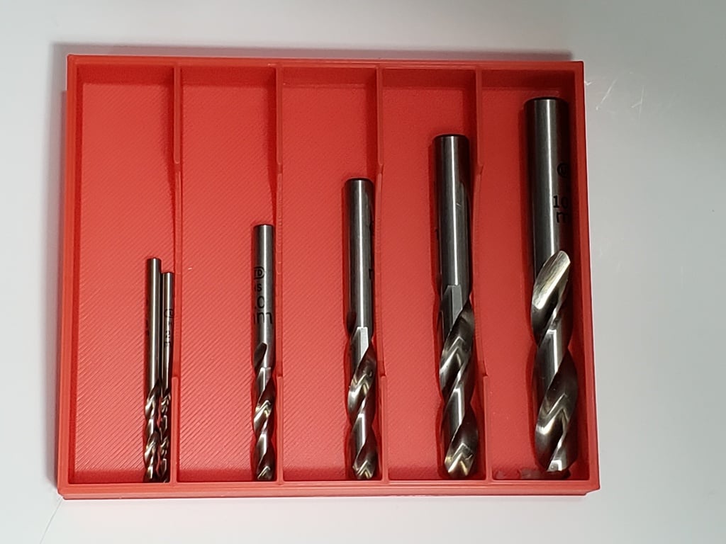 Tämä pieni työkalujärjestäjä on suunniteltu säilyttämään pieniä esineitä, kuten jyrsimiä, poranteriä ja leikkuutyökaluja työkalupakin laatikossa. Siinä on pinoamismahdollisuus; mukana toimitetaan tiedostoja kulmavahvistuksille, jotka voidaan liimata sivuille vakaan pinoamisen mahdollistamiseksi. Kaksi järjestäjää voidaan helposti pinota päällekkäin ja ne mahtuvat kätevästi vähintään 1 tuuman syvyiseen laatikkoon.