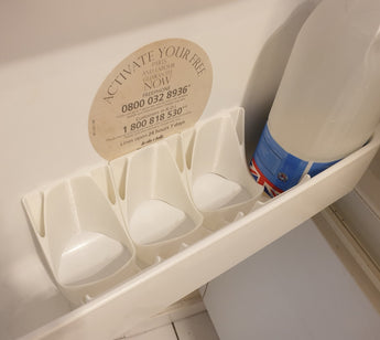 Tämä käytännöllinen kiila on suunniteltu pitämään vakiokokoiset kupit ja pullot vakaasti jääkaapin ovessa. Se soveltuu erityisen hyvin jopa 500 ml:n astioille, joita jääkaapeissa usein nähdään. Käyttämällä tätä pidikettä vältät juomiesi tai muiden astioiden kaatumisen ja putoamisen ulos, kun avaat tai suljet jääkaapin oven. Se edistää järjestelmällisempää jääkaappia ja vähentää läikkymisriskiä, mikä helpottaa arkea.